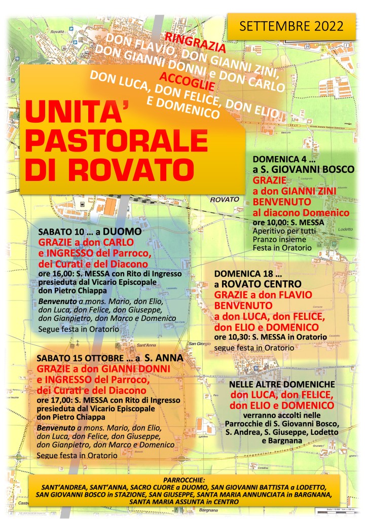 don Luca, don Felice, don Elio e Domenico verranno accolti nelle Parrocchie di S.Giovanni Bosco, S.Andrea, S.Giuseppe, Lodetto e Bargnana