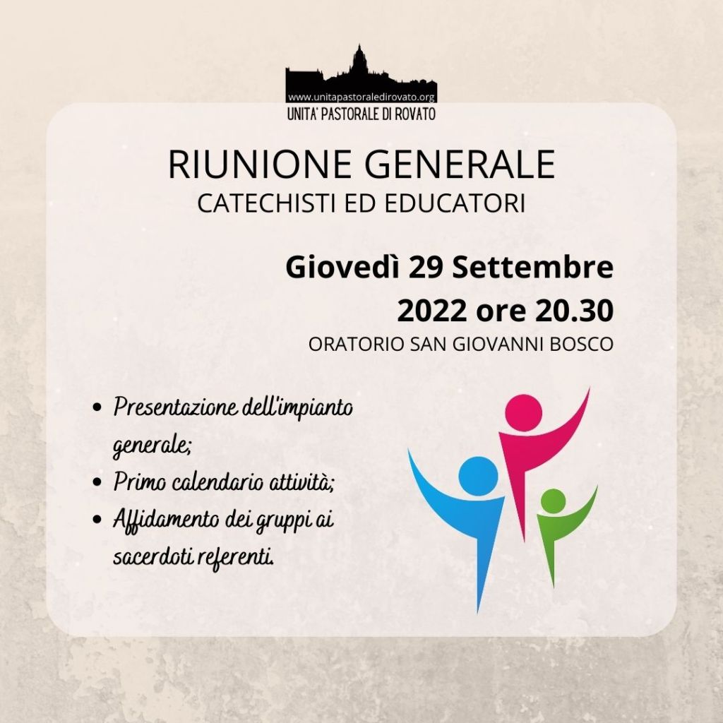 Vi aspettiamo giovedì 29 settembre alle ore 20.30 in oratorio centro per una riunione generale dove presenteremo la struttura educativa per il nuovo anno, il primo calendario e l’affidamento ai sacerdoti referenti.
