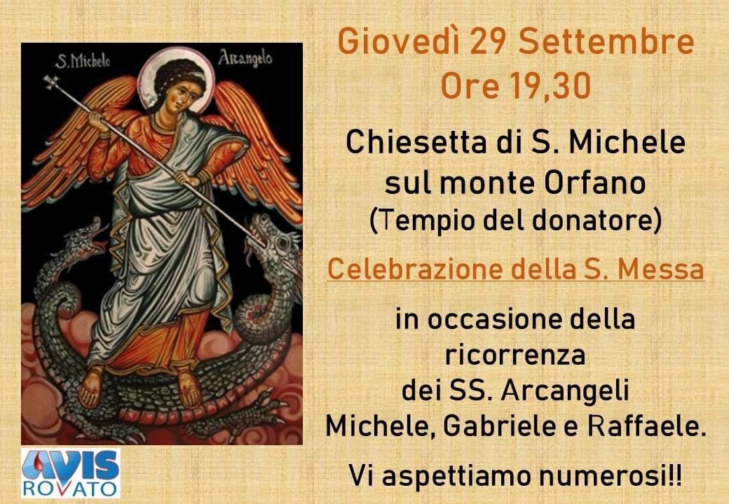 In occasione della ricorrenza dei SS. Arcangeli Michele, Gabriele e Raffaele verrà celebrata la S.Messa presso la chiesetta di S.Michele sul Monte Orfano, Tempio del Donatore.
