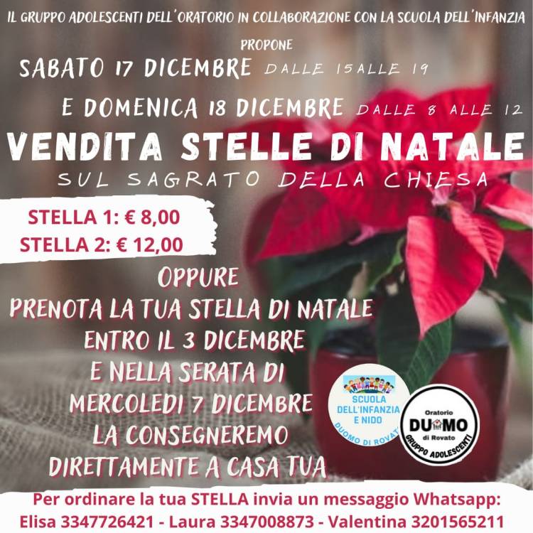 Vendita stelle di Natale, sabato 17 e domenica 18 dicembre dalle 8 alle 12 sul sagrato della chiesa.