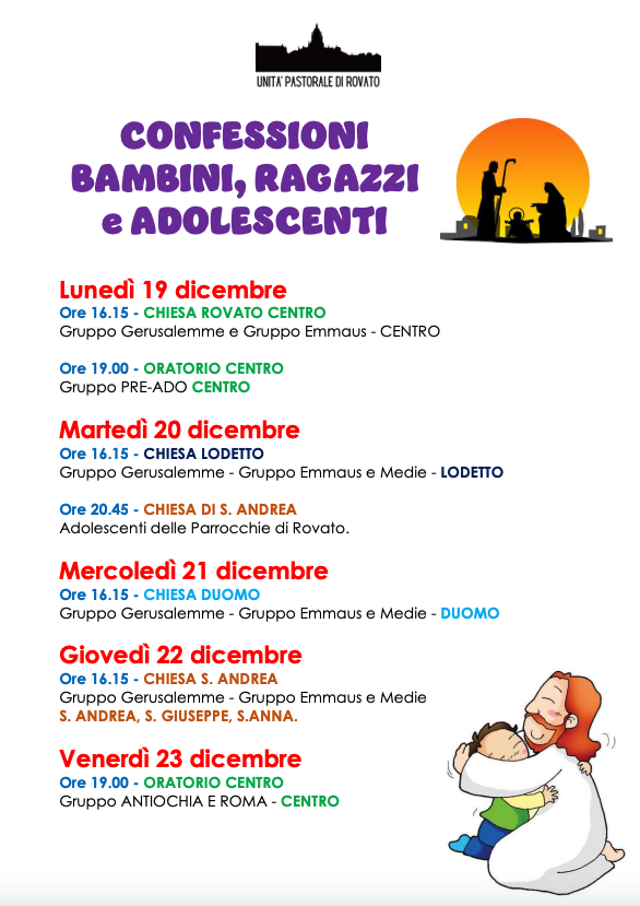 Il calendario, con tutti i principali appuntamenti aggiornati dell’Unità Pastorale di Rovato, è sempre consultabile nell’apposita pagina AGENDA