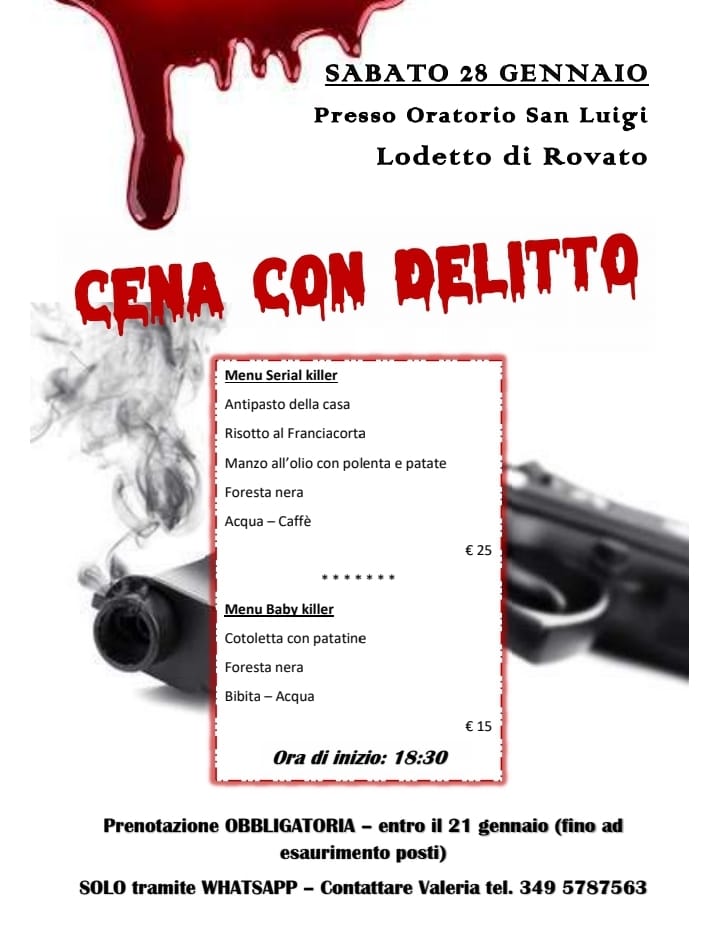 CENA CON DELITTO – sabato 28 gennaio ore 18.30
