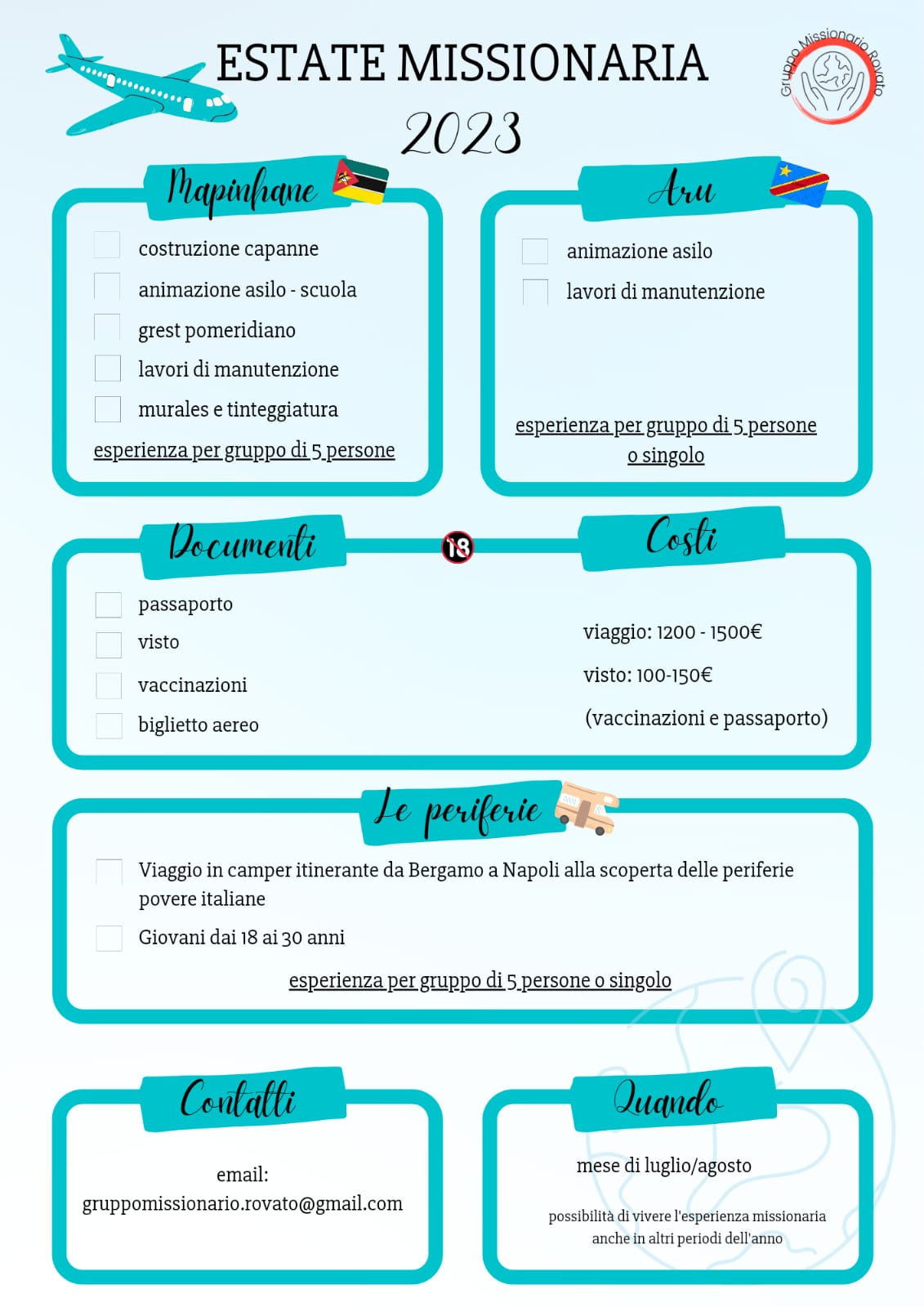 ESTATE MISSIONARIA 2023 – RIUNIONE 11 GENNAIO 2023