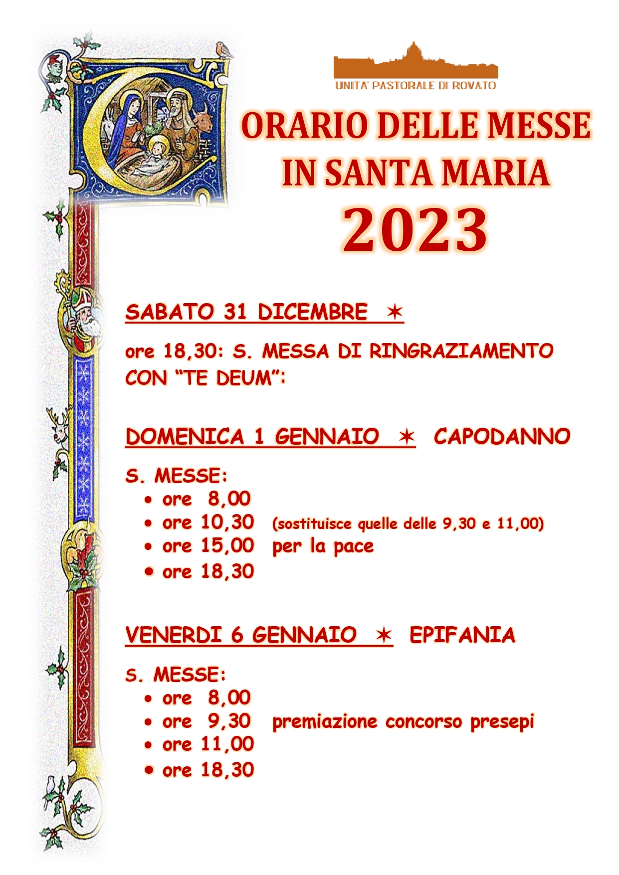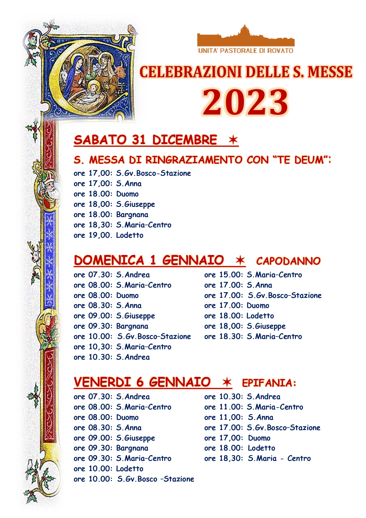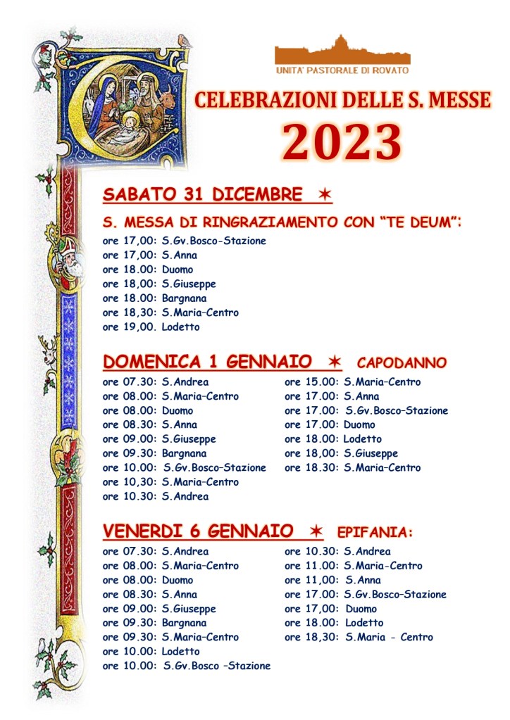 ORARI CELEBRAZIONI S.MESSE DELL’UNITA’ PASTORALE