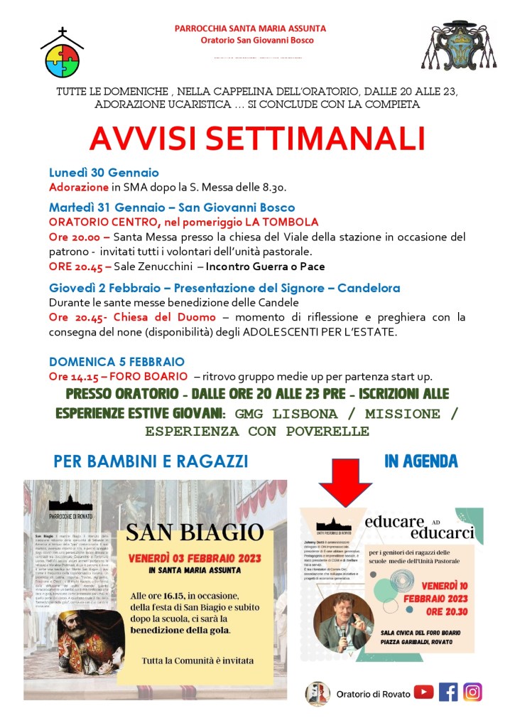 AVVISI SETTIMANALI DAL 29 GENNAIO
