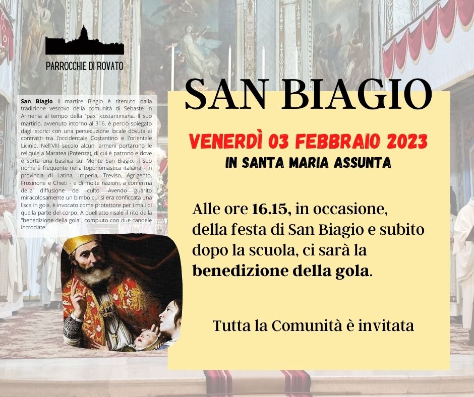 BENEDIZIONE DELLA GOLA – VENERDI’ 3 FEBBRAIO