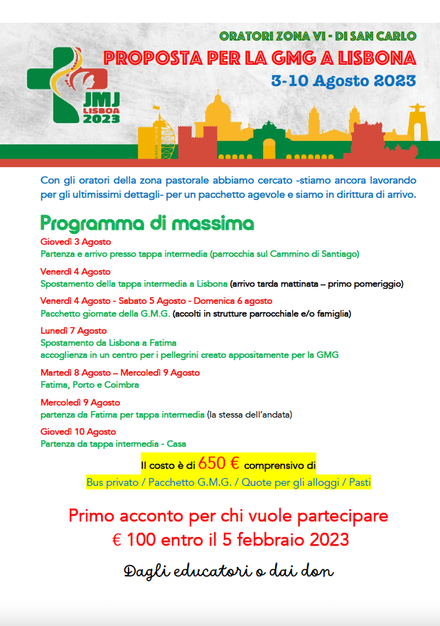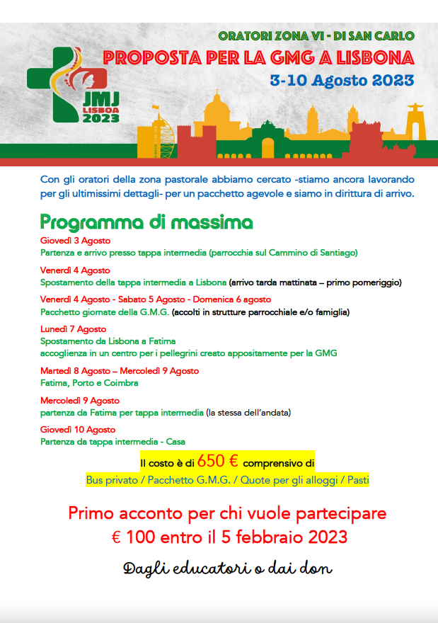 PROPOSTA GMG LISBONA – 03-10 AGOSTO 2023