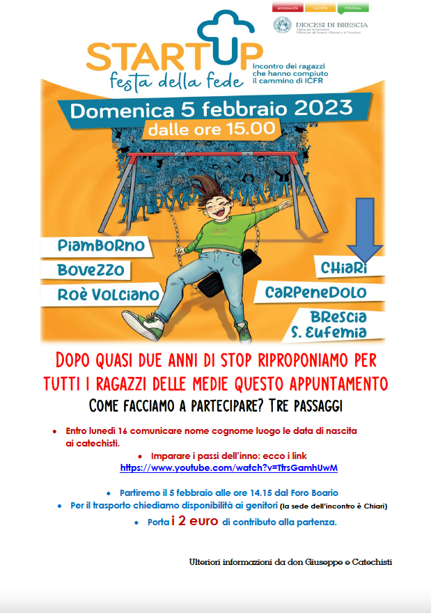 STARTUP – FESTA DELLE FEDE – DOMENICA 5 FEBBRAIO