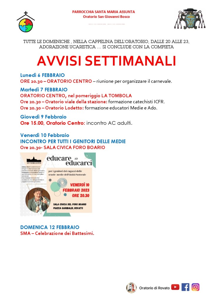 AVVISI SETTIMANALI DAL 04 FEBBRAIO