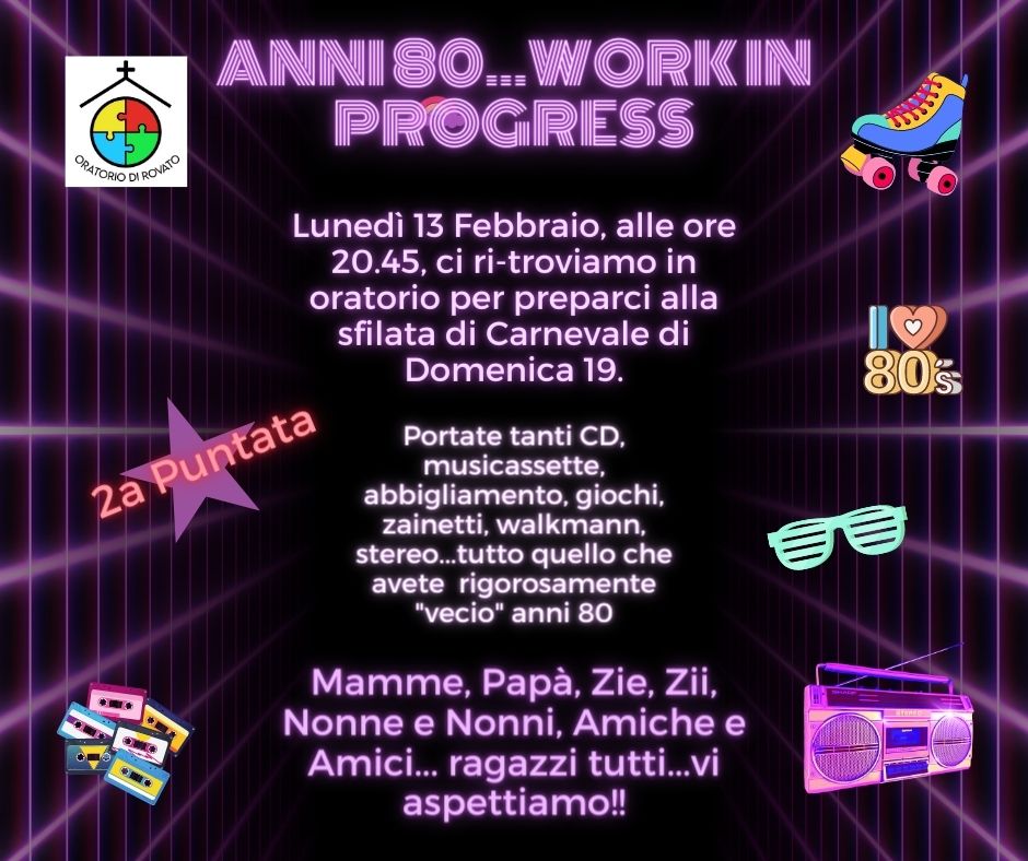 ANNI 80 WORK IN PROGRESS – PREPARIAMOCI AL CARNEVALE IN ORATORIO