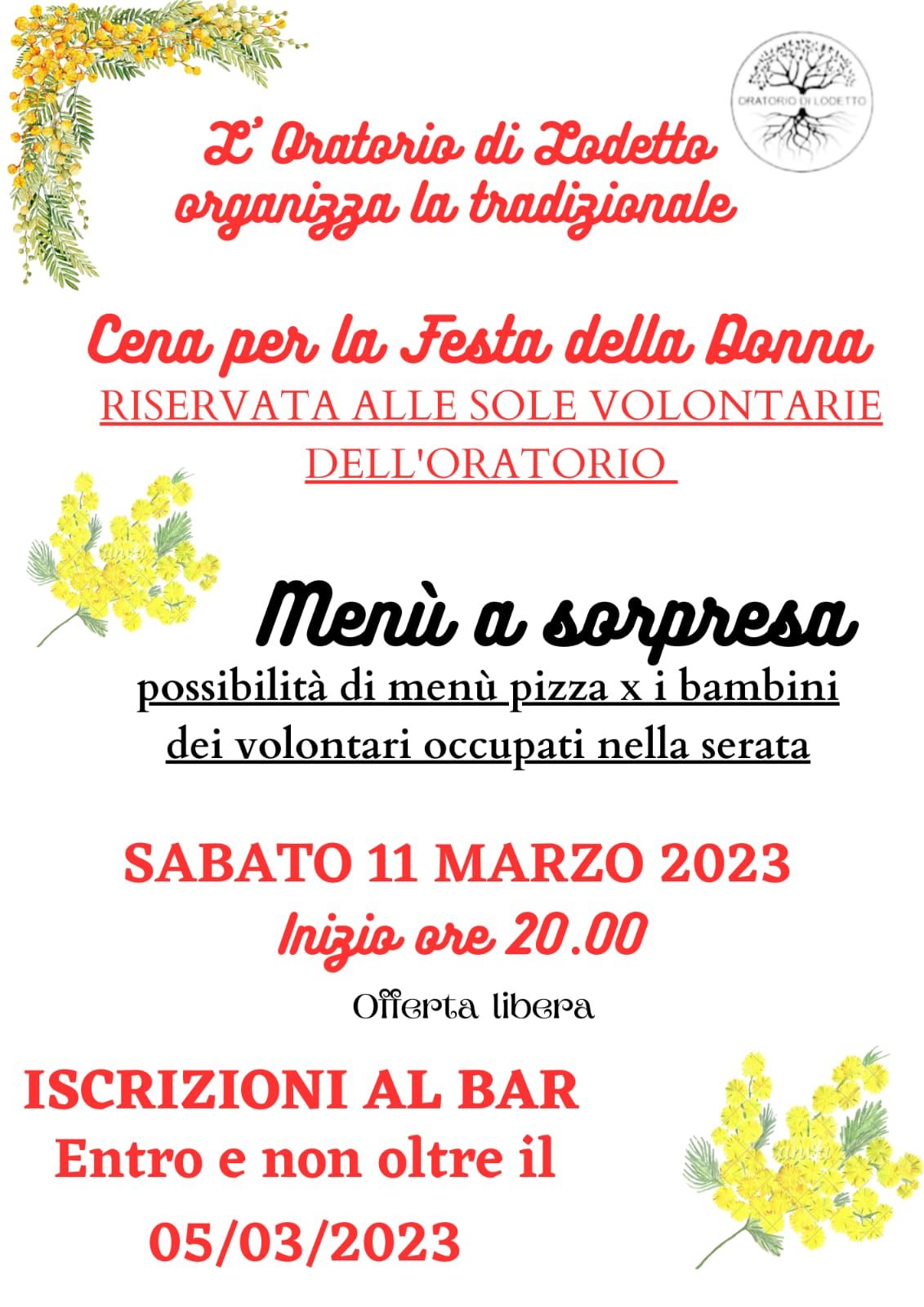 CENA PER LA FESTA DELLE DONNE – LODETTO 11 MARZO