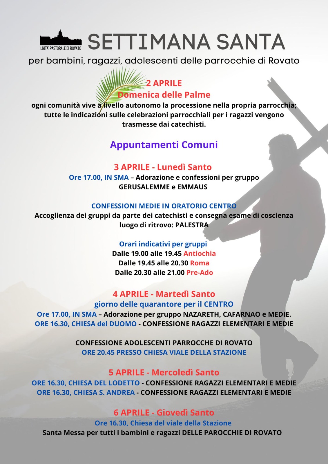 Il calendario, con tutti i principali appuntamenti aggiornati dell’Unità Pastorale di Rovato, è sempre consultabile nell’apposita pagina AGENDA