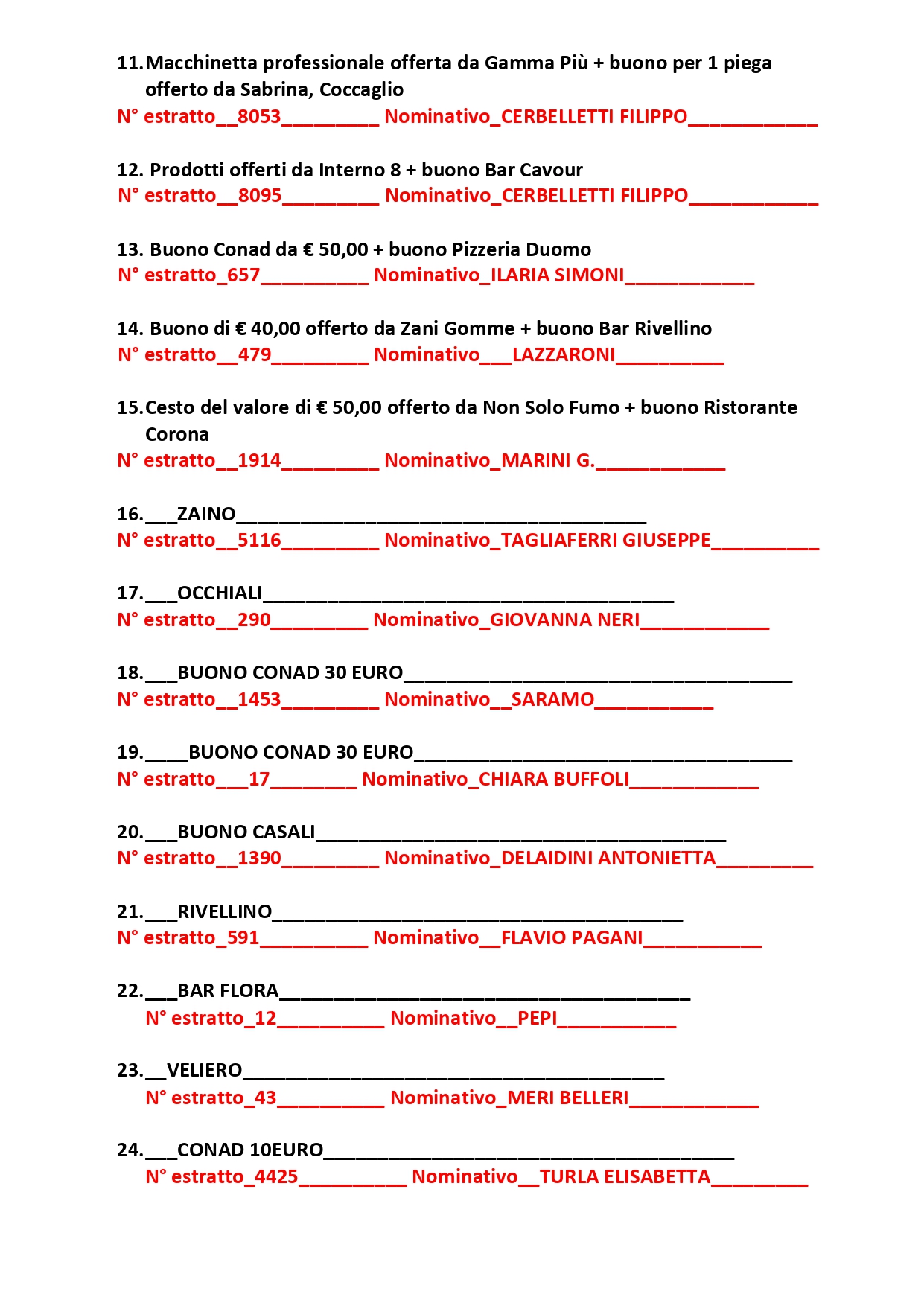 I premi possono essere ritirati presso l’ufficio dell’Oratorio di Rovato Centro negli orari di apertura.