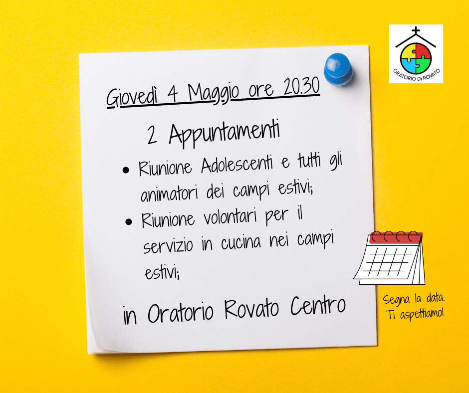 RIUNIONE ADOLESCENTI E VOLONTARI CUCINA PER I CAMPI ESTIVI – 04 MAGGIO 2023