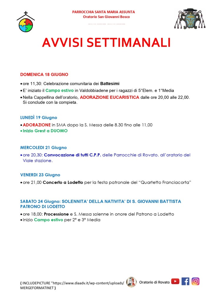 Il calendario, con tutti i principali appuntamenti aggiornati dell’Unità Pastorale di Rovato, è sempre consultabile nell’apposita pagina AGENDA