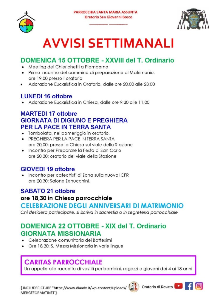 Il calendario mensile, con tutti i principali appuntamenti aggiornati dell’Unità Pastorale di Rovato, è sempre consultabile nell’apposita pagina AGENDA