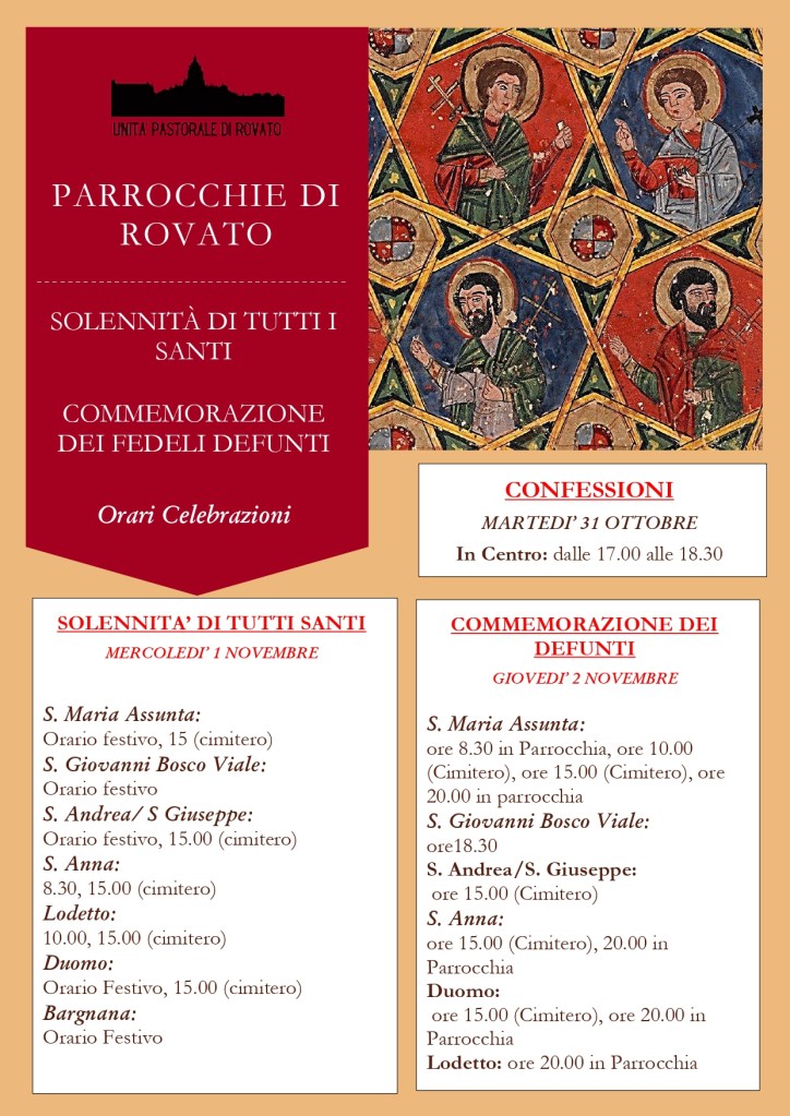 Il calendario mensile, con tutti i principali appuntamenti aggiornati dell’Unità Pastorale di Rovato, è sempre consultabile nell’apposita pagina AGENDA