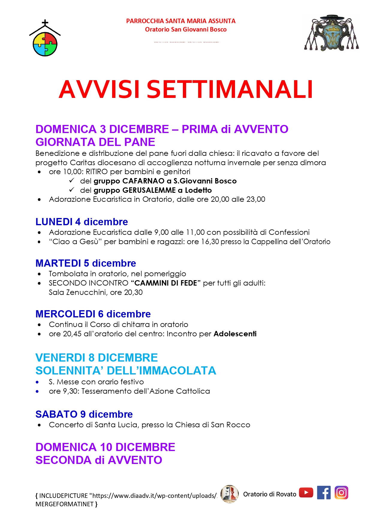 Il calendario mensile, con tutti i principali appuntamenti aggiornati dell’Unità Pastorale di Rovato, è sempre consultabile nell’apposita pagina AGENDA