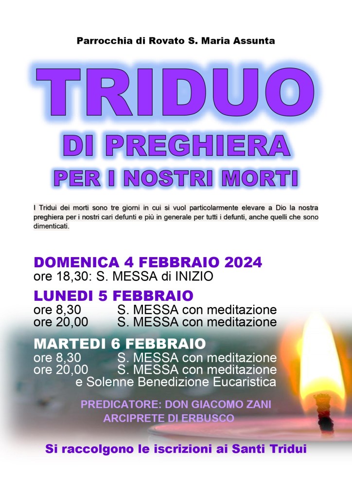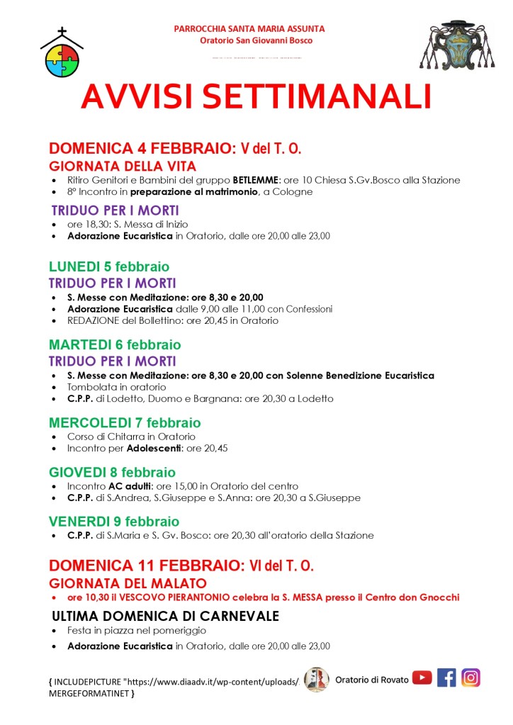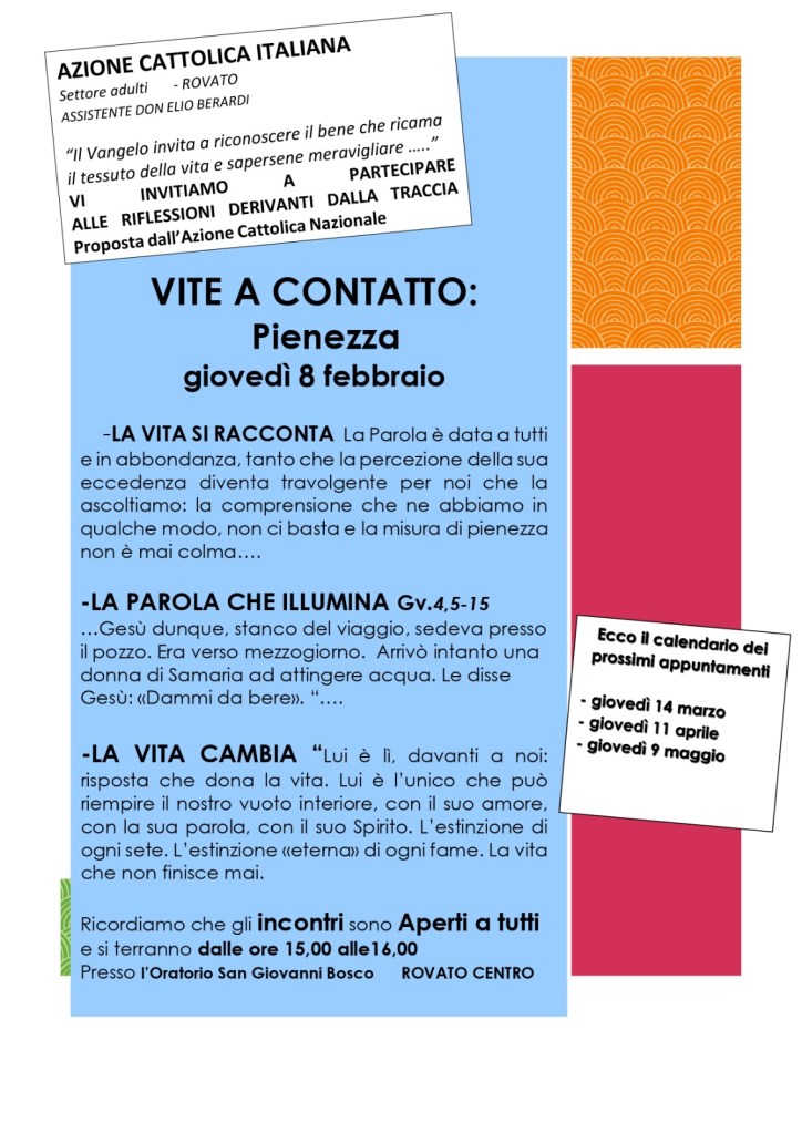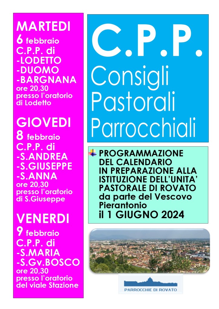 Il calendario mensile, con tutti i principali appuntamenti aggiornati dell’Unità Pastorale di Rovato, è sempre consultabile nell’apposita pagina AGENDA