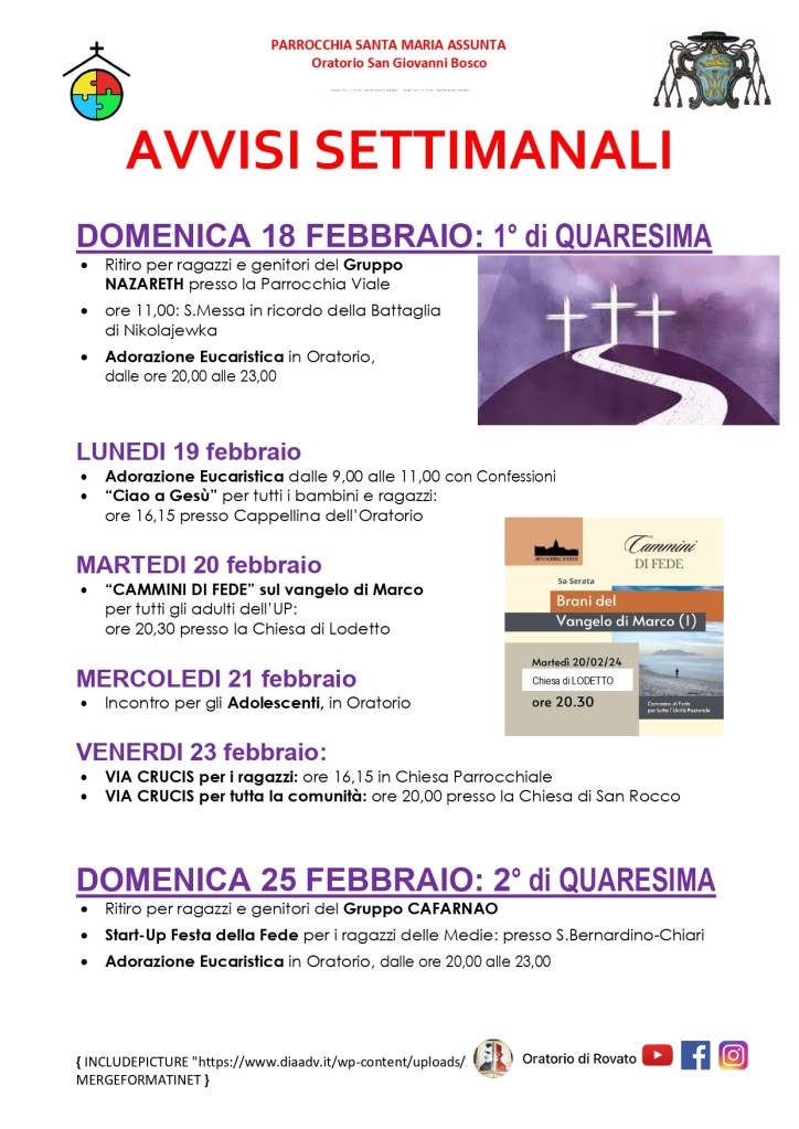 Domenica 18 Febbraio 2024 – I Domenica di Quaresima