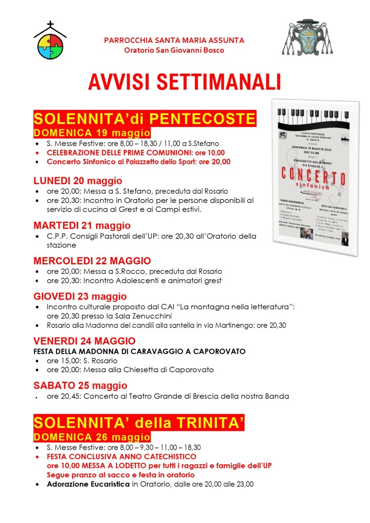 Il calendario mensile, con tutti i principali appuntamenti aggiornati dell’Unità Pastorale di Rovato, è sempre consultabile nell’apposita pagina AGENDA