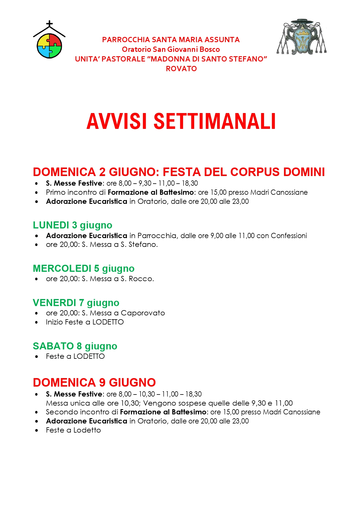 Domenica 2 Giugno 2024 – Santissimo Corpo e Sangue di Cristo