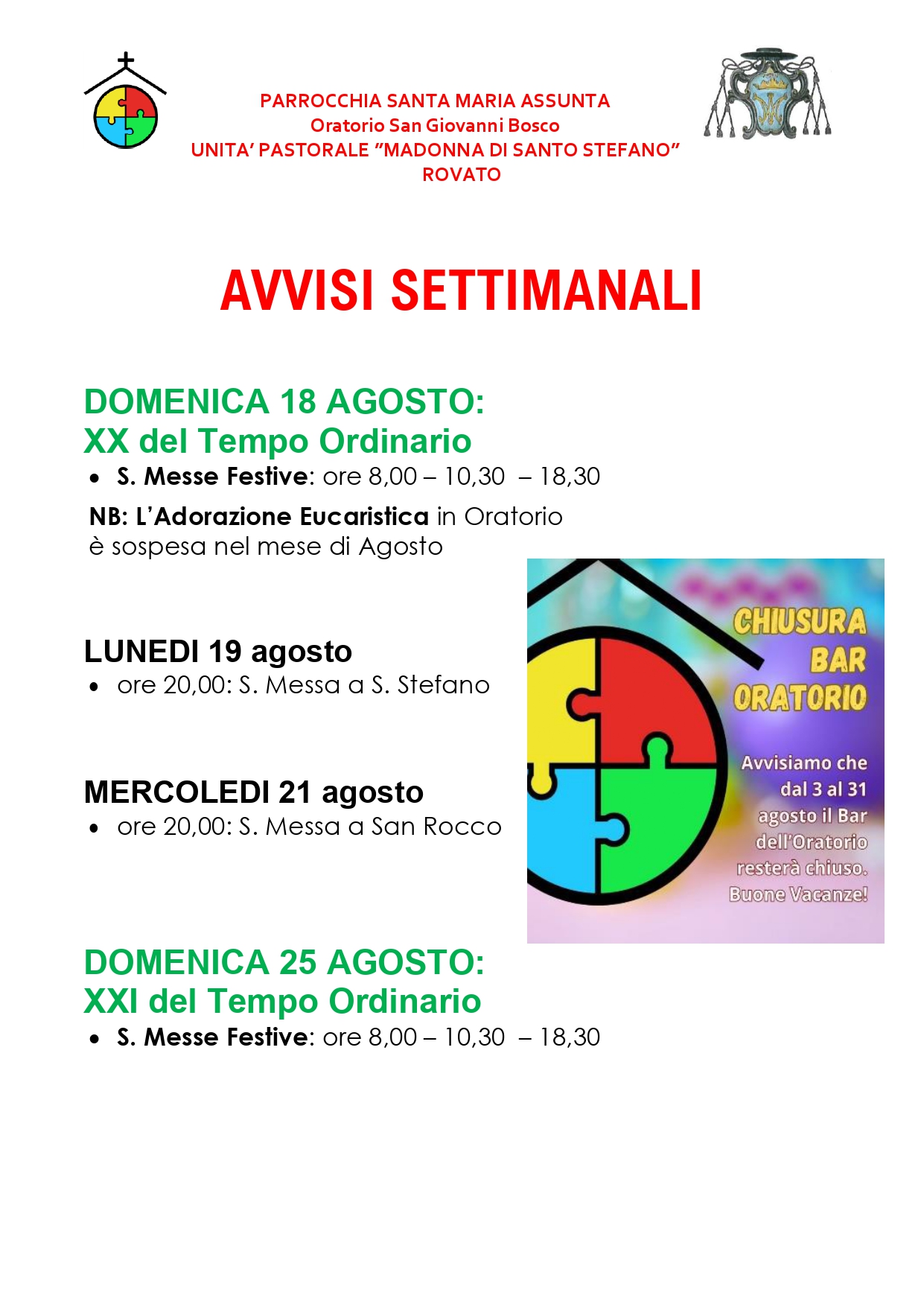 Il calendario mensile, con tutti i principali appuntamenti aggiornati dell’Unità Pastorale di Rovato, è sempre consultabile nell’apposita pagina CALENDARIO