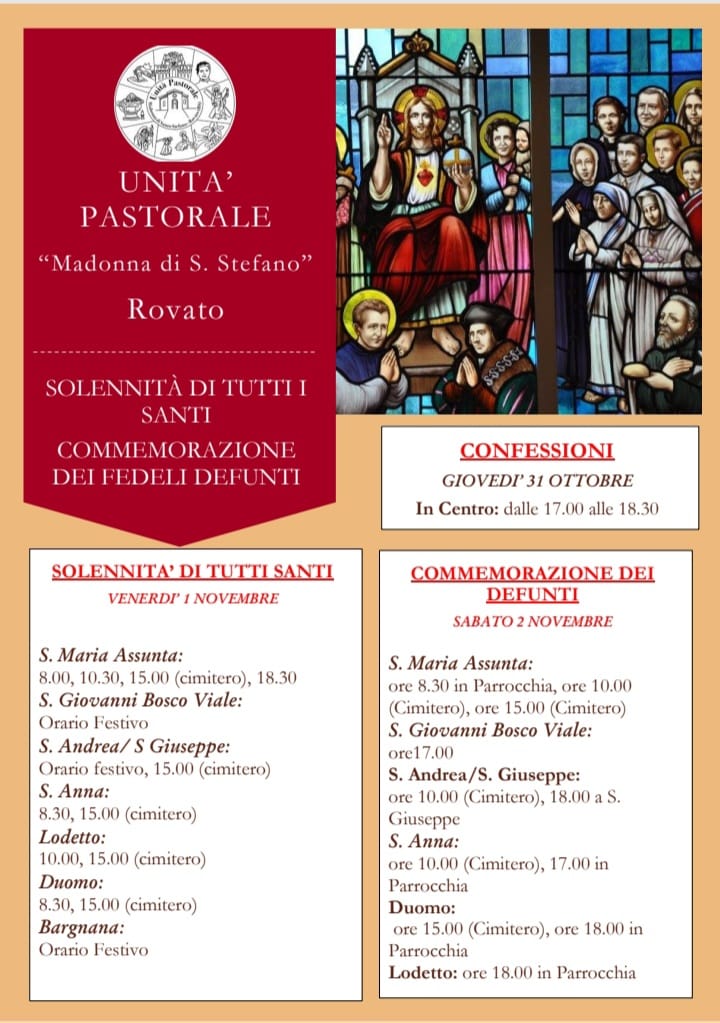 Il calendario mensile, con tutti i principali appuntamenti aggiornati dell’Unità Pastorale di Rovato, è sempre consultabile nell’apposita pagina AGENDA