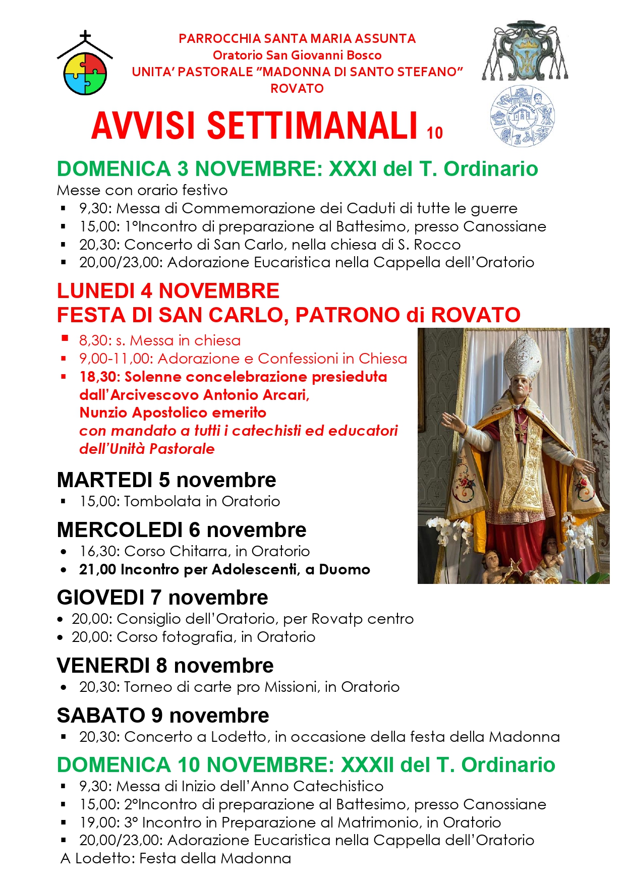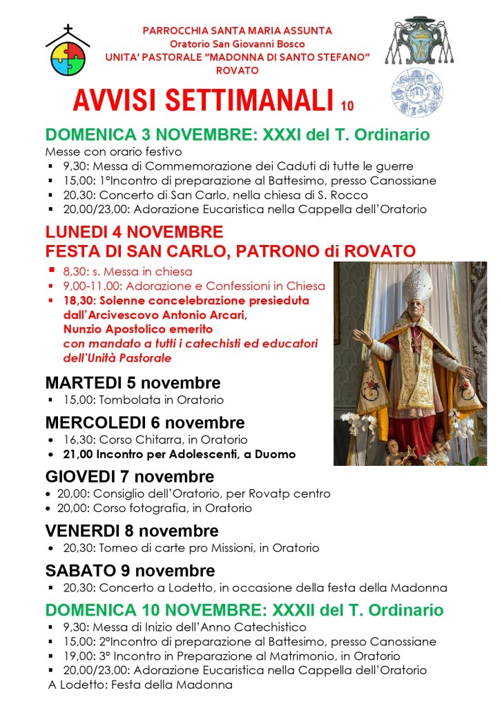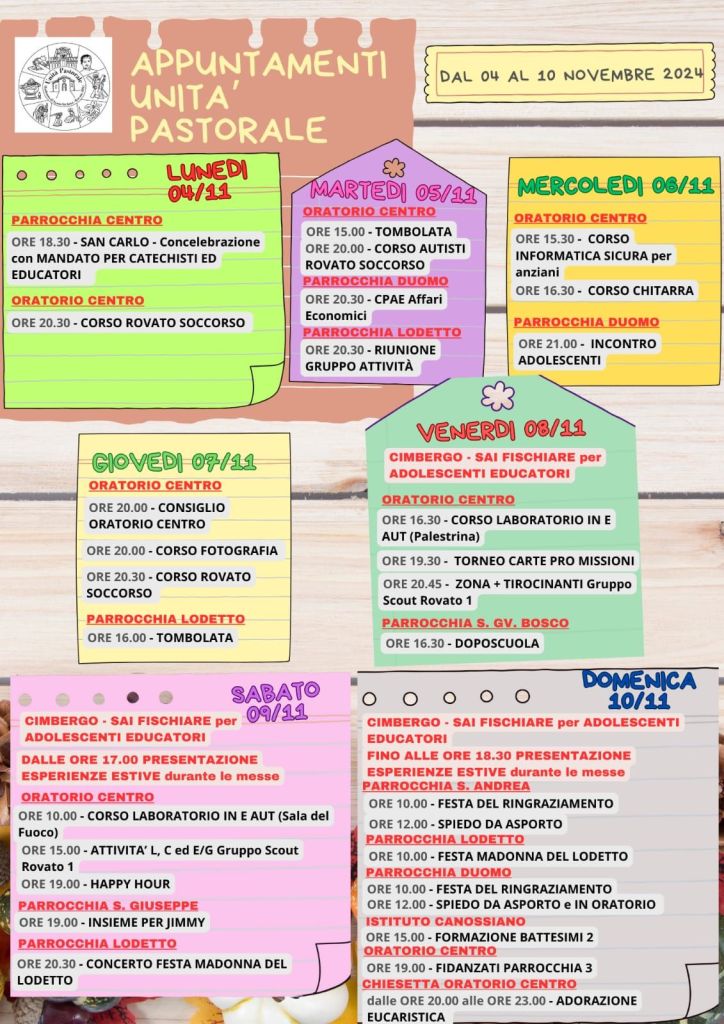 Il calendario mensile, con tutti i principali appuntamenti aggiornati dell’Unità Pastorale di Rovato, è sempre consultabile nell’apposita pagina AGENDA