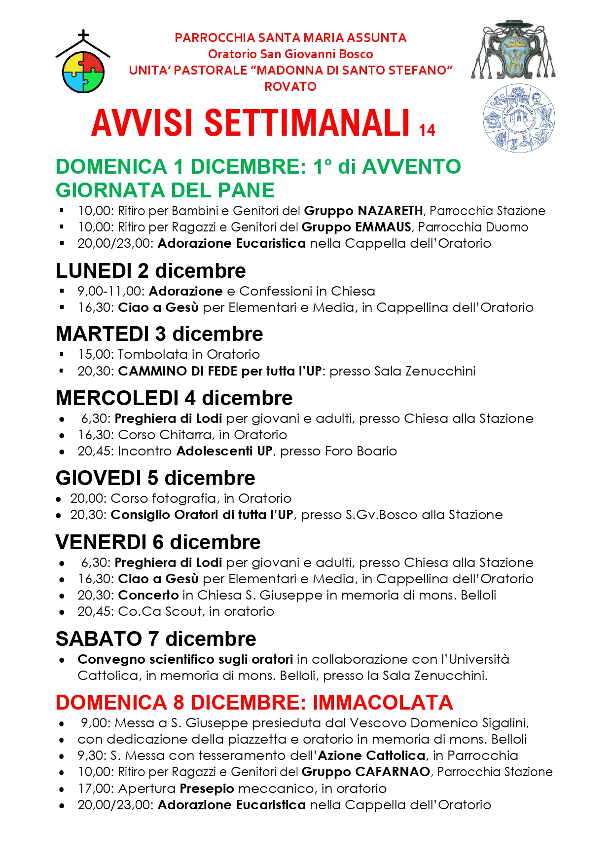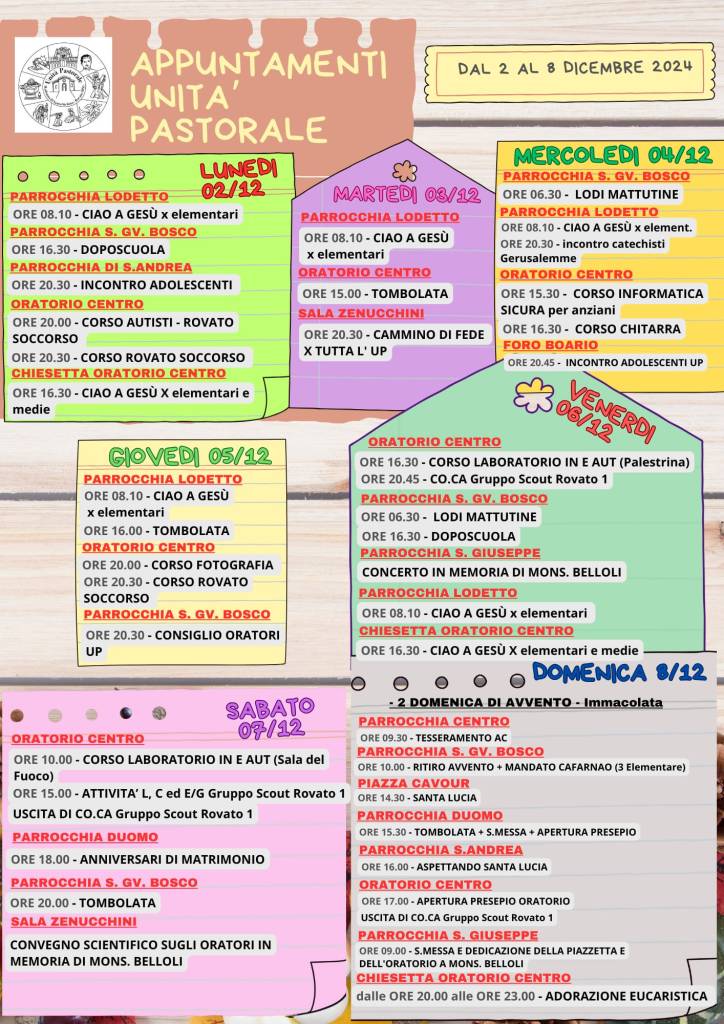 Il calendario mensile, con tutti i principali appuntamenti aggiornati dell’Unità Pastorale di Rovato, è sempre consultabile nell’apposita pagina AGENDA