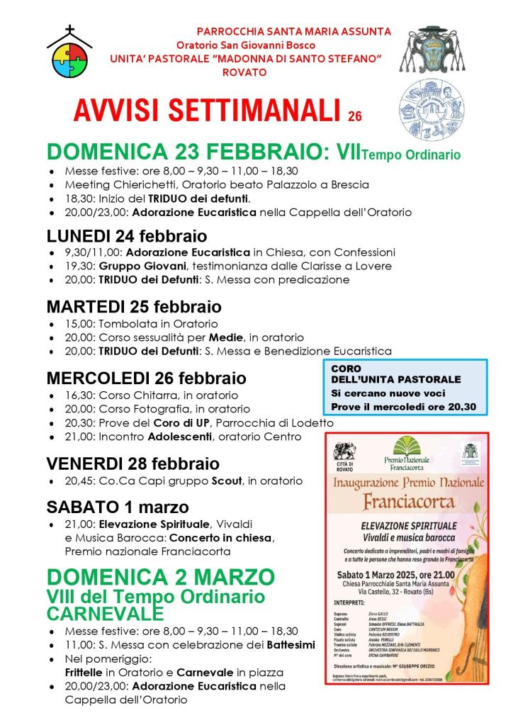 Il calendario mensile, con tutti i principali appuntamenti aggiornati dell’Unità Pastorale di Rovato, è sempre consultabile nell’apposita pagina AGENDA