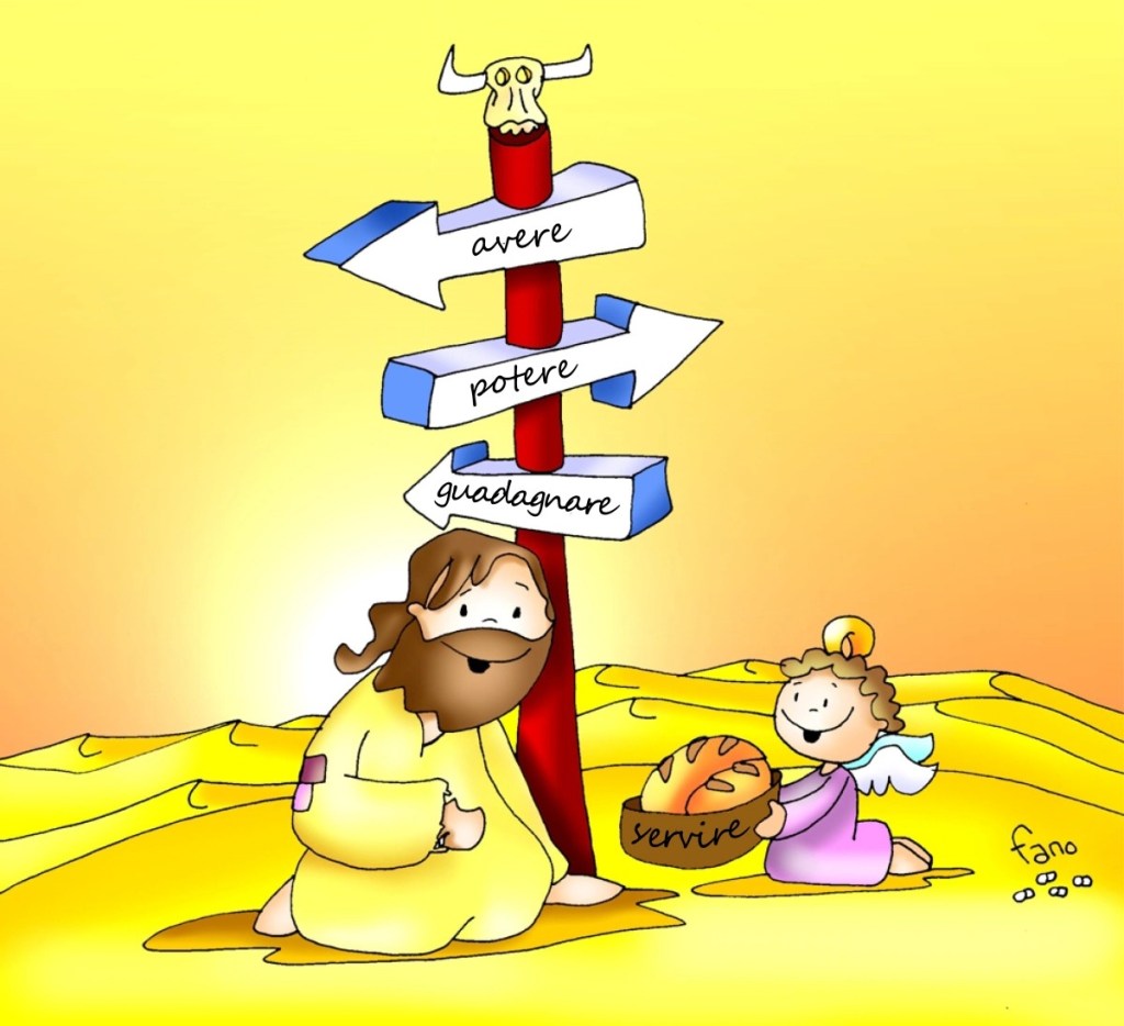 Ma che strane le tentazioni di Gesù nel deserto! Fuori dal tempo. Nessuno di noi penserebbe di mangiare pietre, o di arrampicarsi sul pinnacolo del tempio per poi galleggiare nell’aria, e questa offerta di un potere sul mondo la penseremmo per pochi, tiranni senza coscienza, parassiti folli della storia.