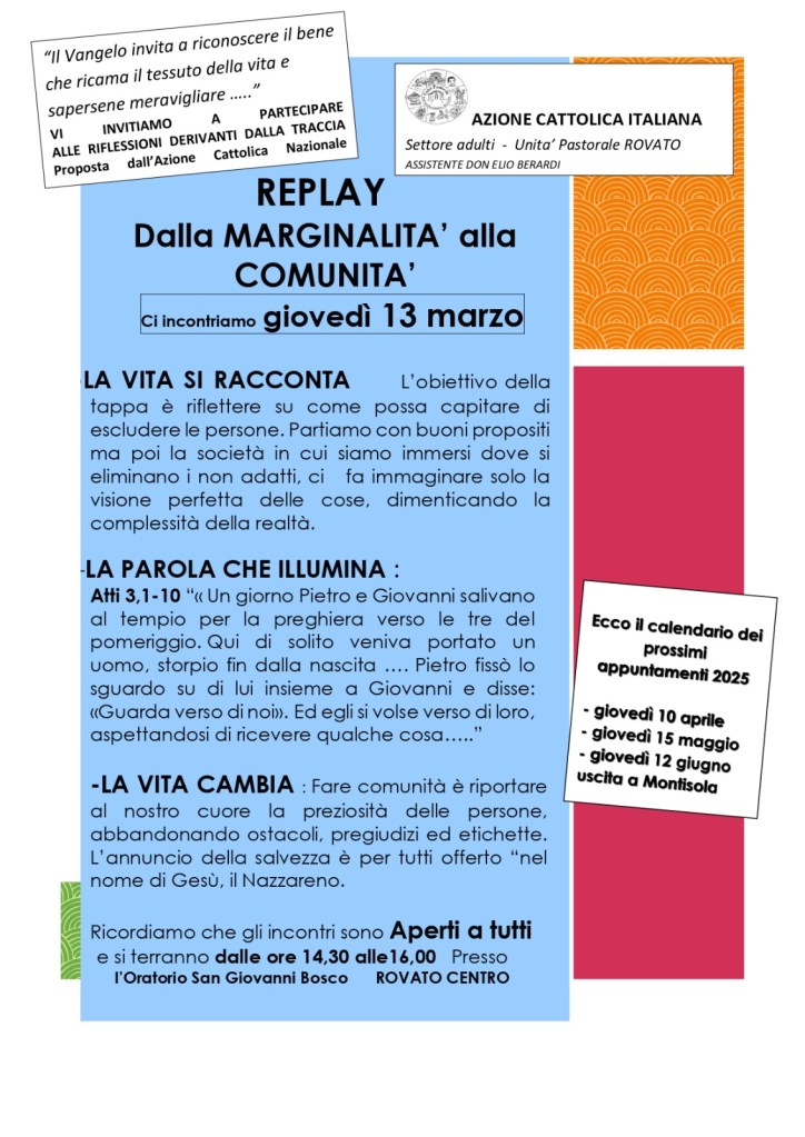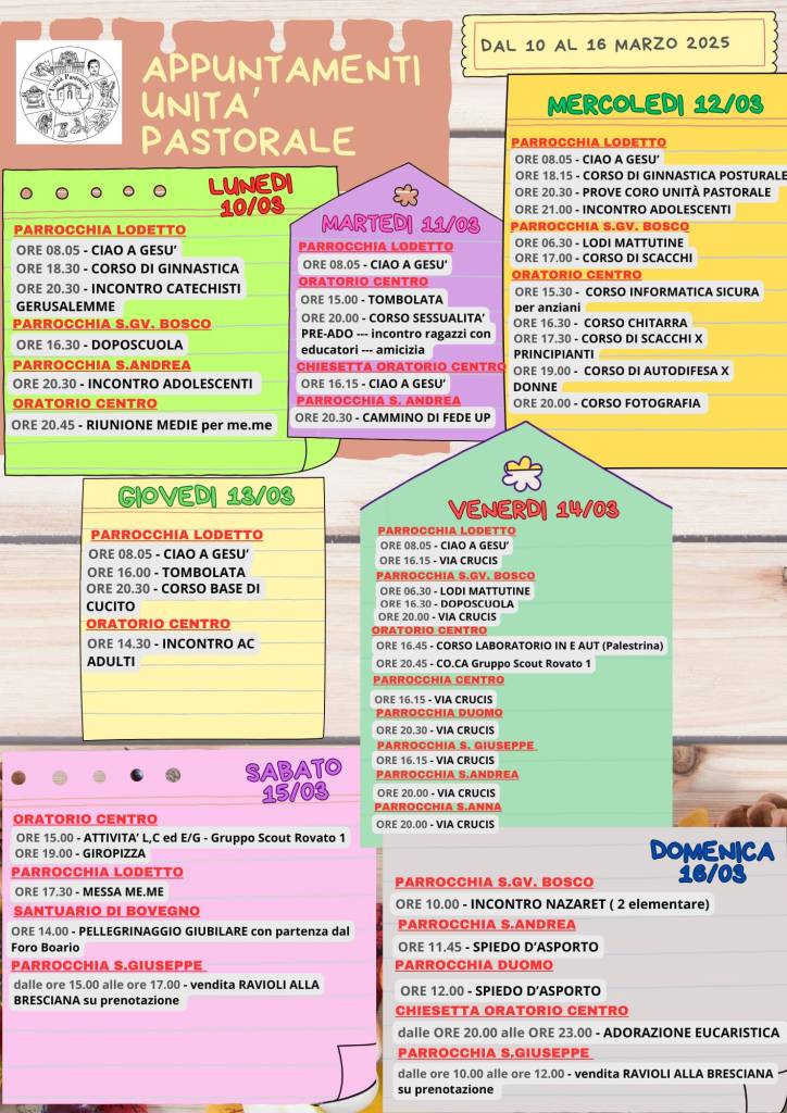 Il calendario mensile, con tutti i principali appuntamenti aggiornati dell’Unità Pastorale di Rovato, è sempre consultabile nell’apposita pagina AGENDA