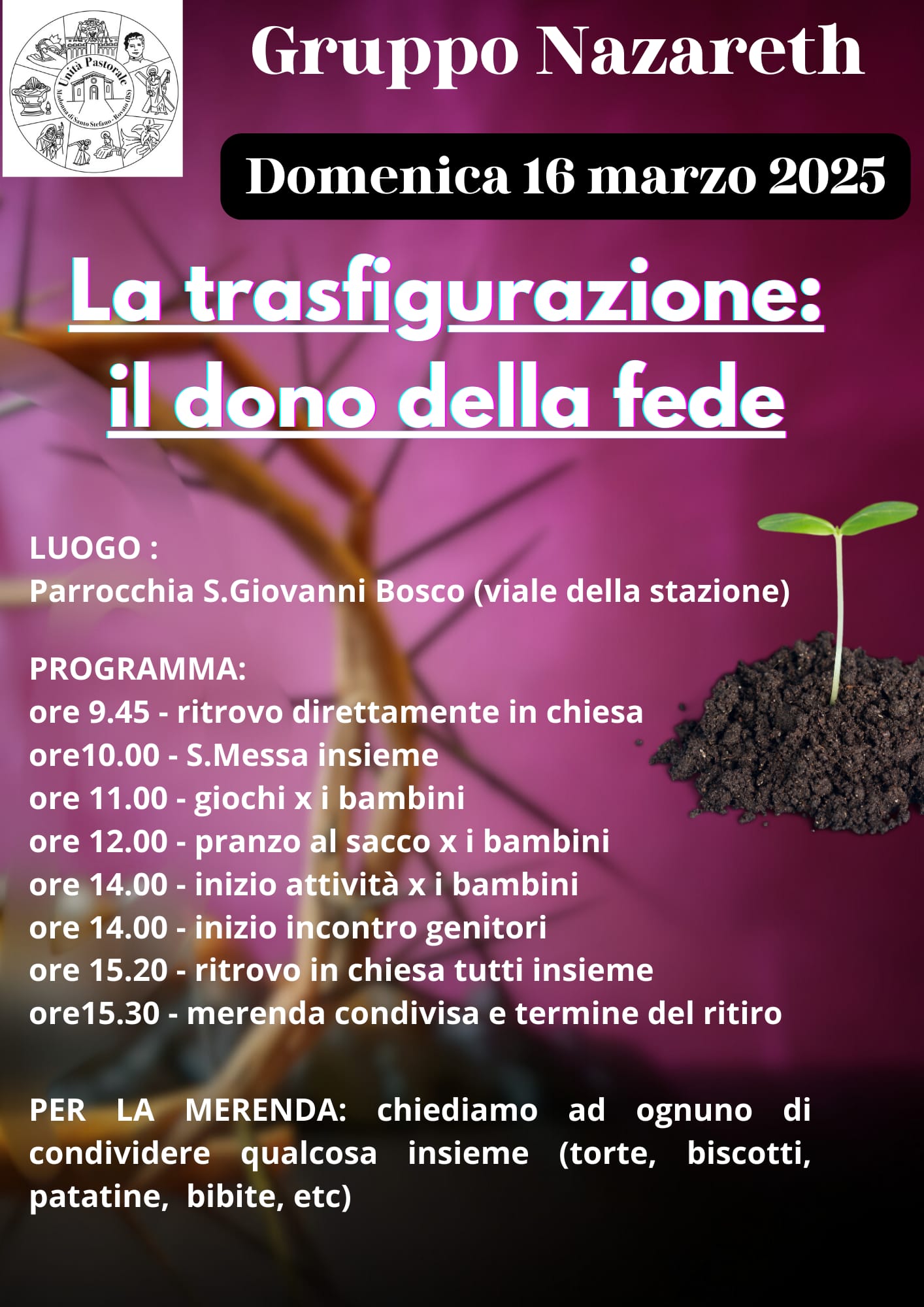 La luce e la consolazione di Dio lo invadono. Il volto trasfigurato indica una forte esperienza consolatrice di Dio. I discepoli sono affascinati, vorrebbero fermare il momento felice, ma Gesù li invita a proseguire il viaggio verso Gerusalemme.