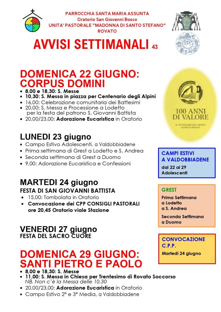 Il calendario mensile, con tutti i principali appuntamenti aggiornati dell’Unità Pastorale di Rovato, è sempre consultabile nell’apposita pagina AGENDA