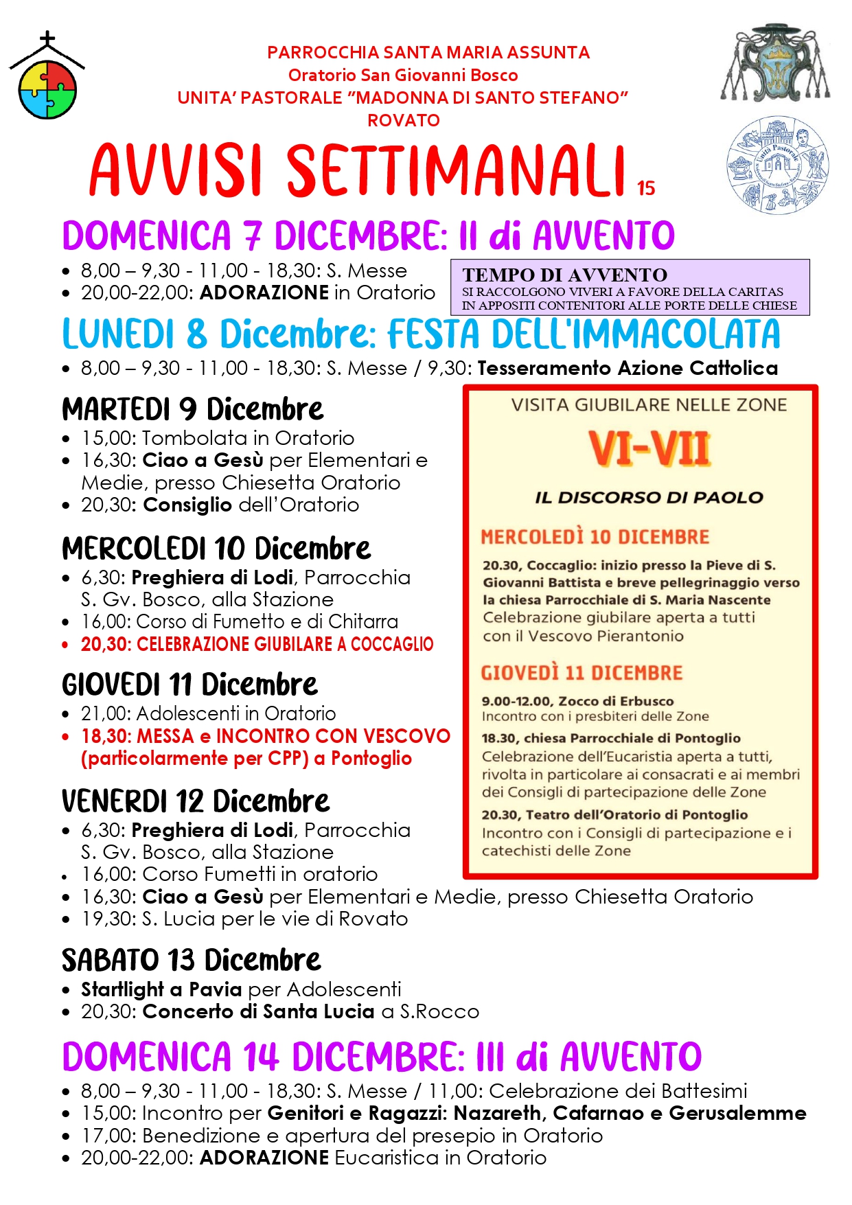 Il calendario mensile, con tutti i principali appuntamenti aggiornati dell’Unità Pastorale di Rovato, è sempre consultabile nell’apposita pagina AGENDA