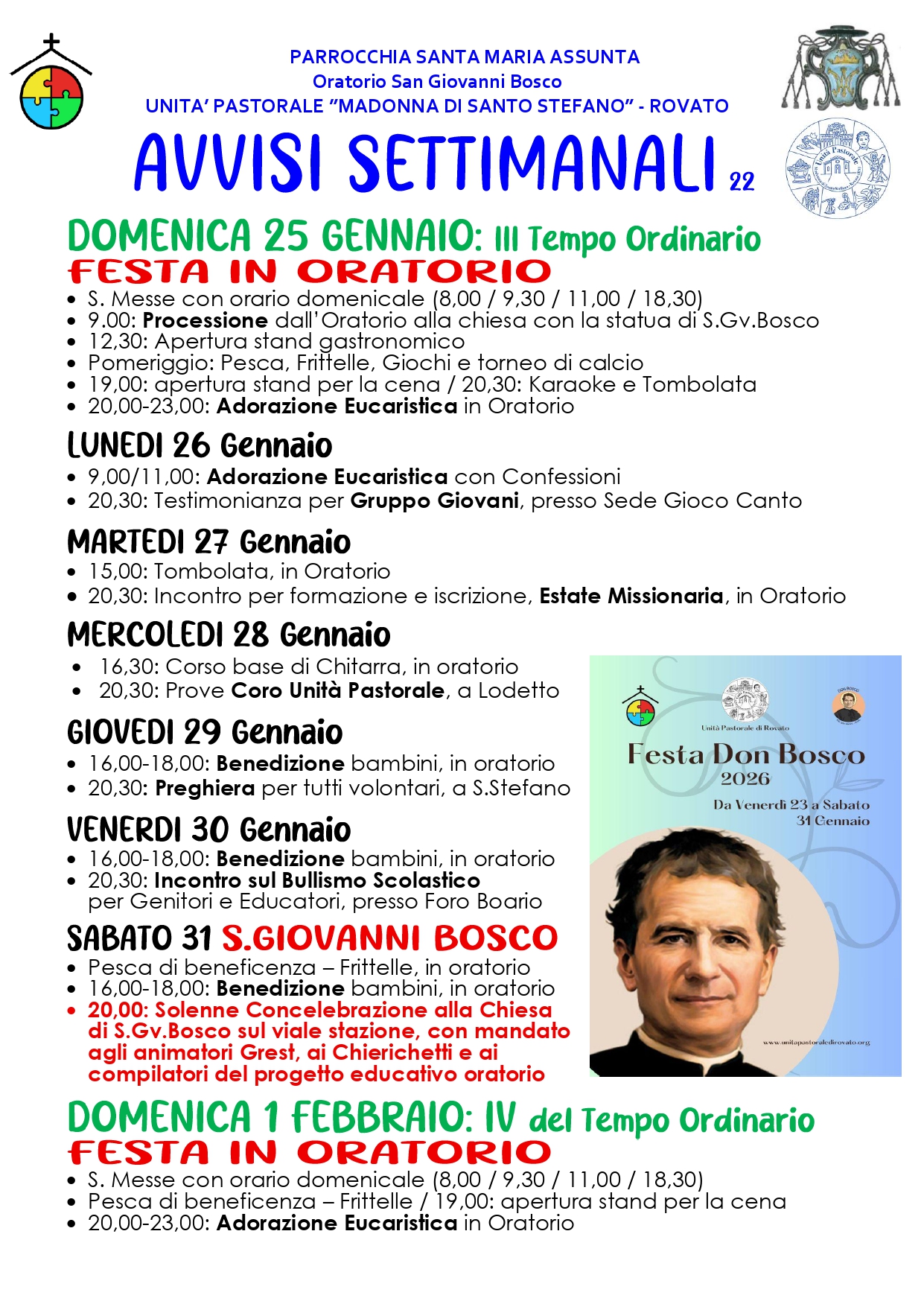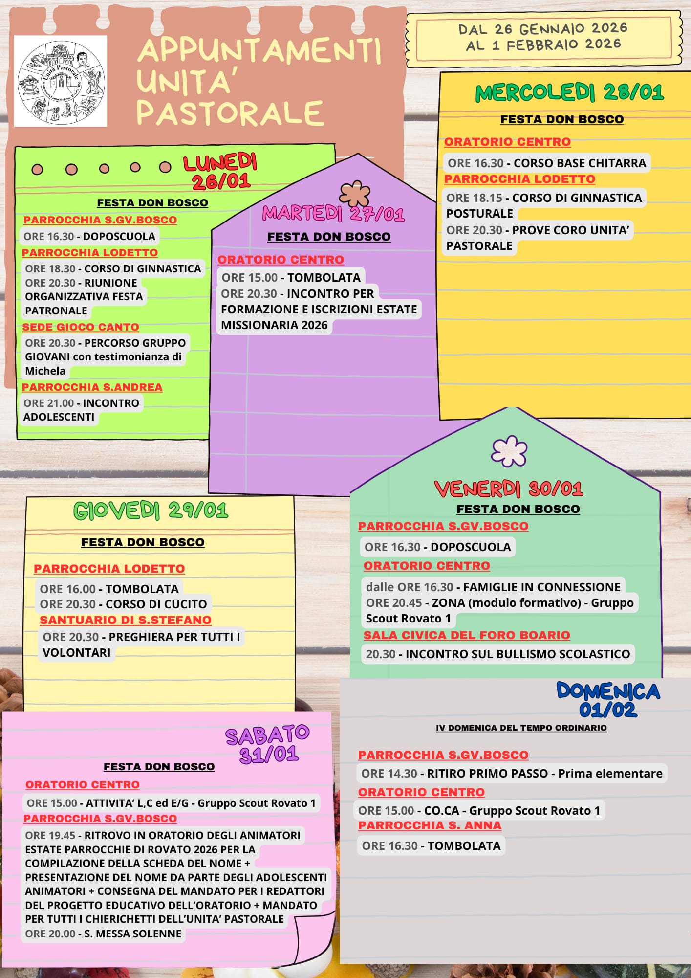 Il calendario mensile, con tutti i principali appuntamenti aggiornati dell’Unità Pastorale di Rovato, è sempre consultabile nell’apposita pagina AGENDA