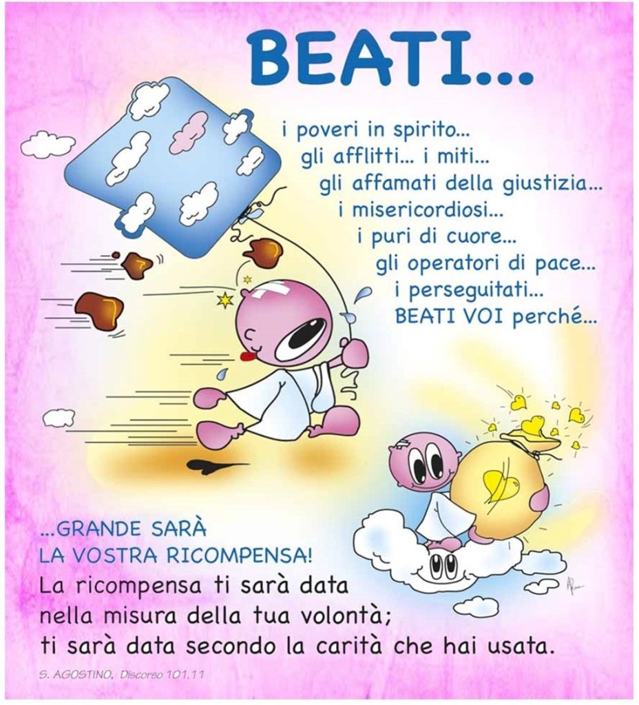 Beati voi quando vi insulteranno, vi perseguiteranno e, mentendo, diranno ogni sorta di male contro di voi per causa mia. Rallegratevi ed esultate, perché grande è la vostra ricompensa nei cieli».