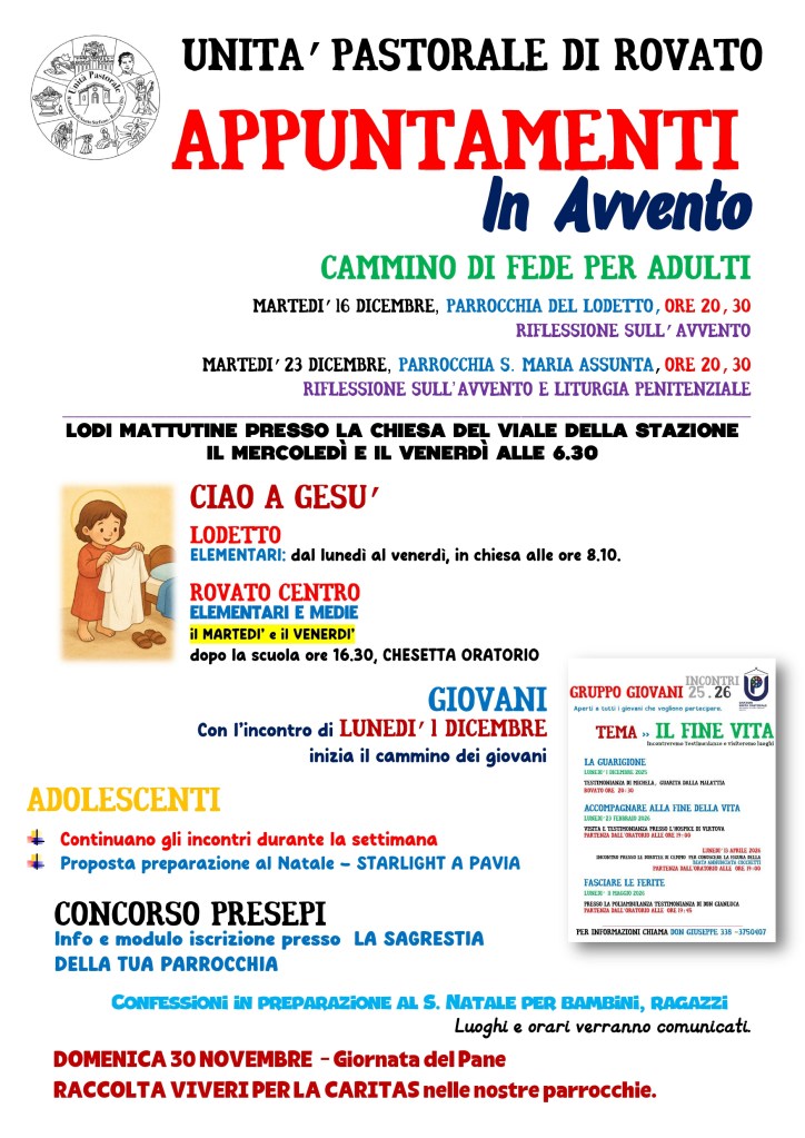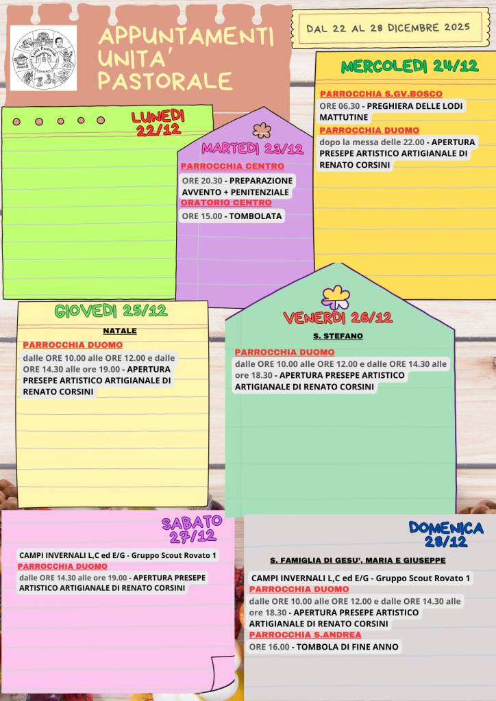 Il calendario mensile, con tutti i principali appuntamenti aggiornati dell’Unità Pastorale di Rovato, è sempre consultabile nell’apposita pagina AGENDA