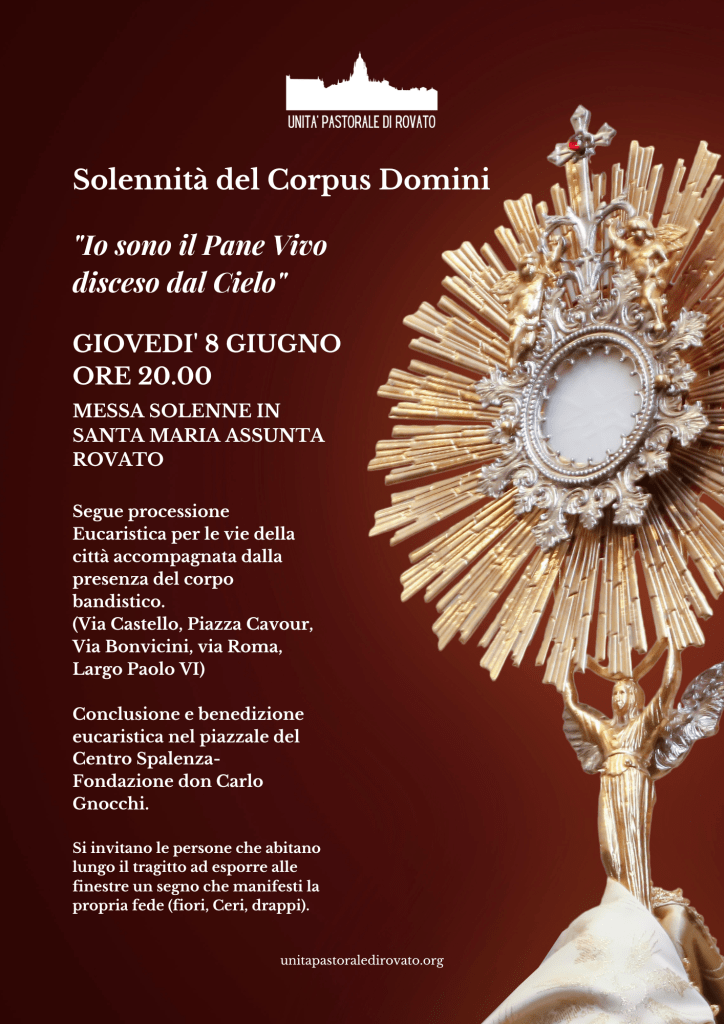 Il calendario, con tutti i principali appuntamenti aggiornati dell’Unità Pastorale di Rovato, è sempre consultabile nell’apposita pagina AGENDA