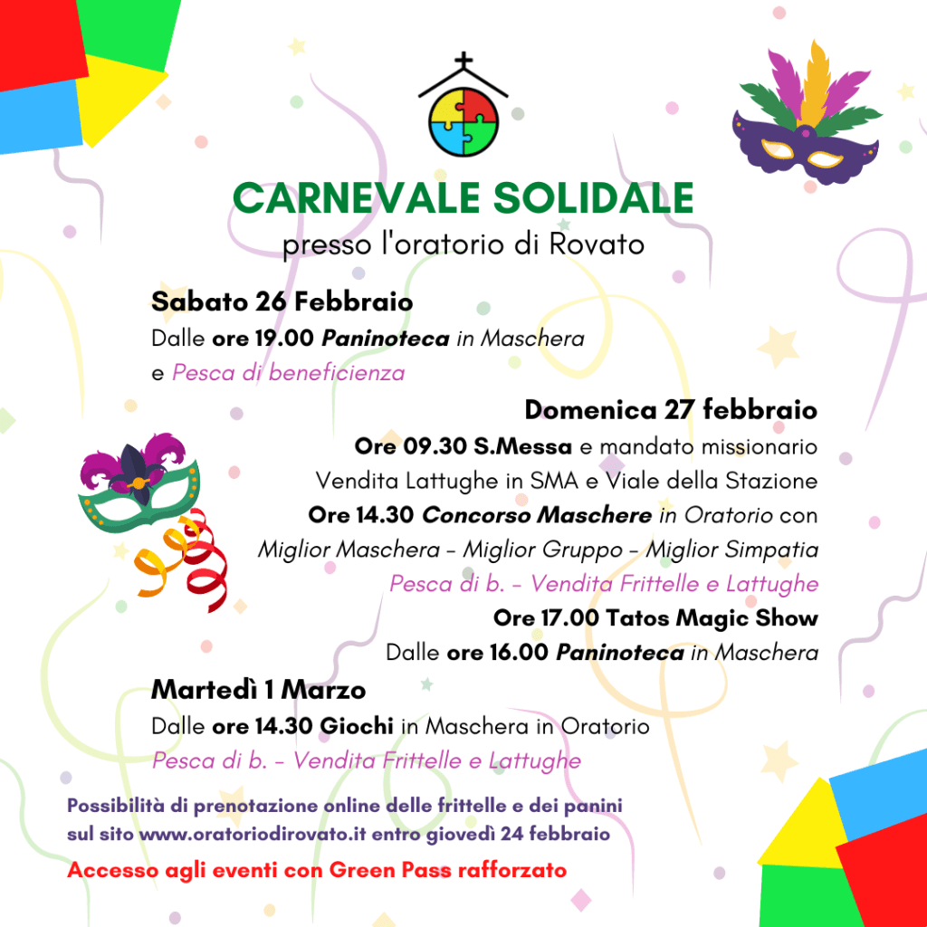 Vi aspettiamo anche sabato 26 febbraio dalle 19 nella Paninoteca in Maschera, domenica 27 con un ricco programma di eventi (vedi locandina) e martedì 1 marzo dalle 14.30.