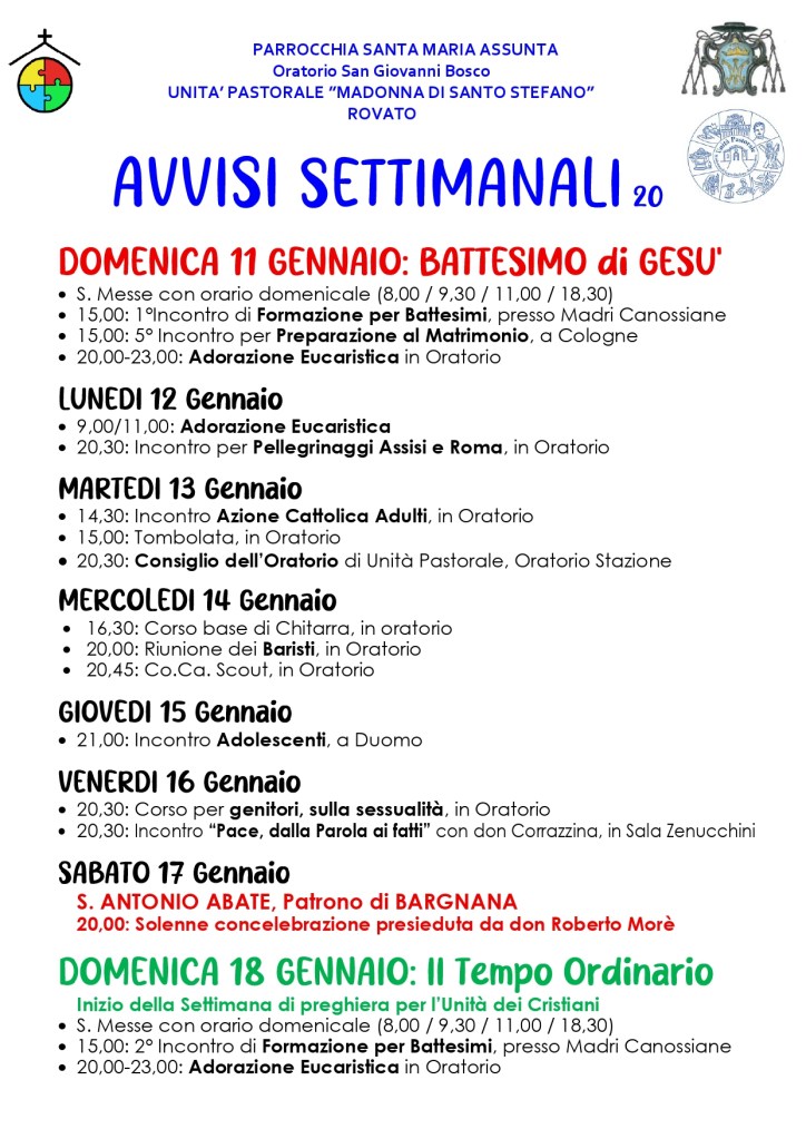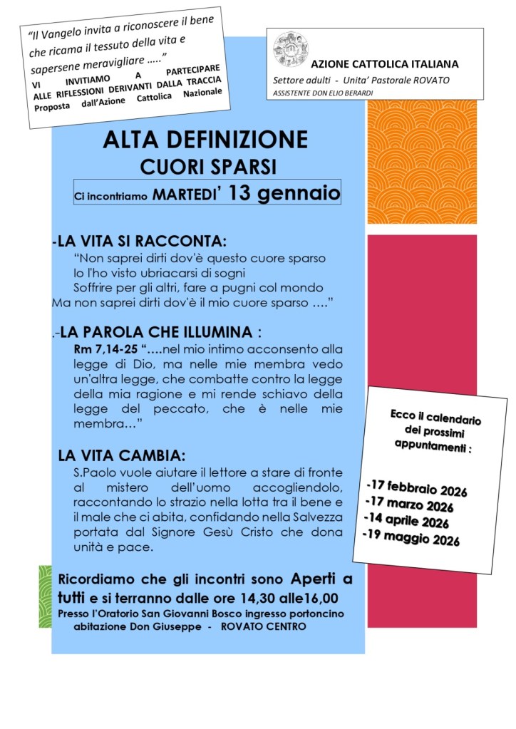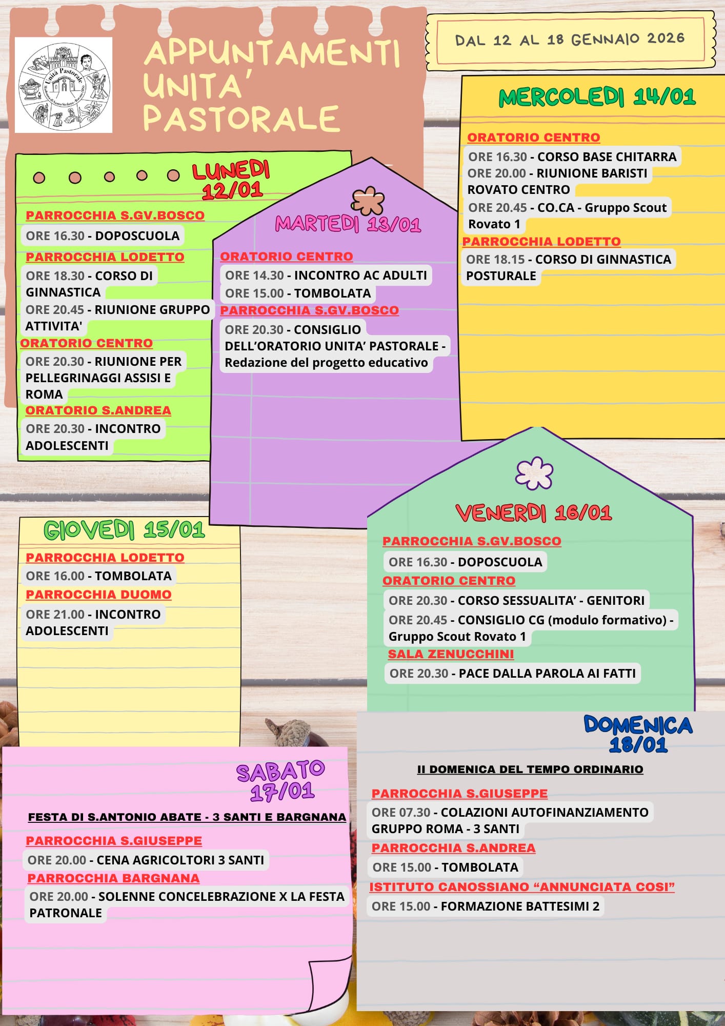 Il calendario mensile, con tutti i principali appuntamenti aggiornati dell’Unità Pastorale di Rovato, è sempre consultabile nell’apposita pagina AGENDA