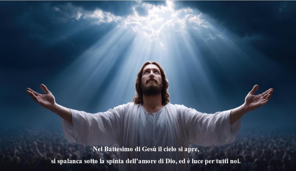 Appena battezzato, Gesù uscì dall’acqua: ed ecco, si aprirono per lui i cieli ed egli vide lo Spirito di Dio discendere come una colomba e venire sopra di lui. Ed ecco una voce dal cielo che diceva: «Questi è il Figlio mio, l’amato: in lui ho posto il mio compiacimento».