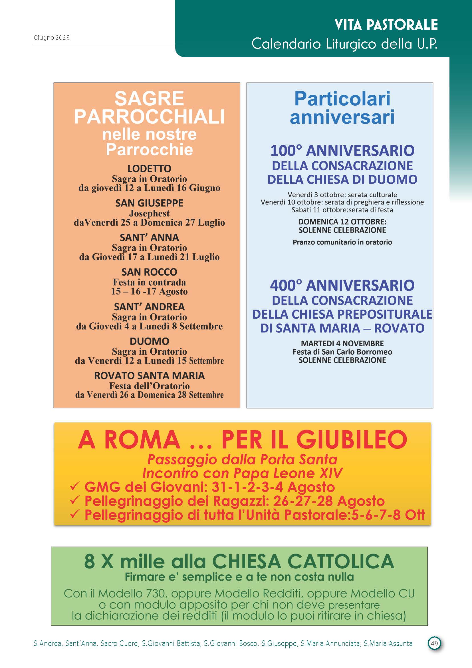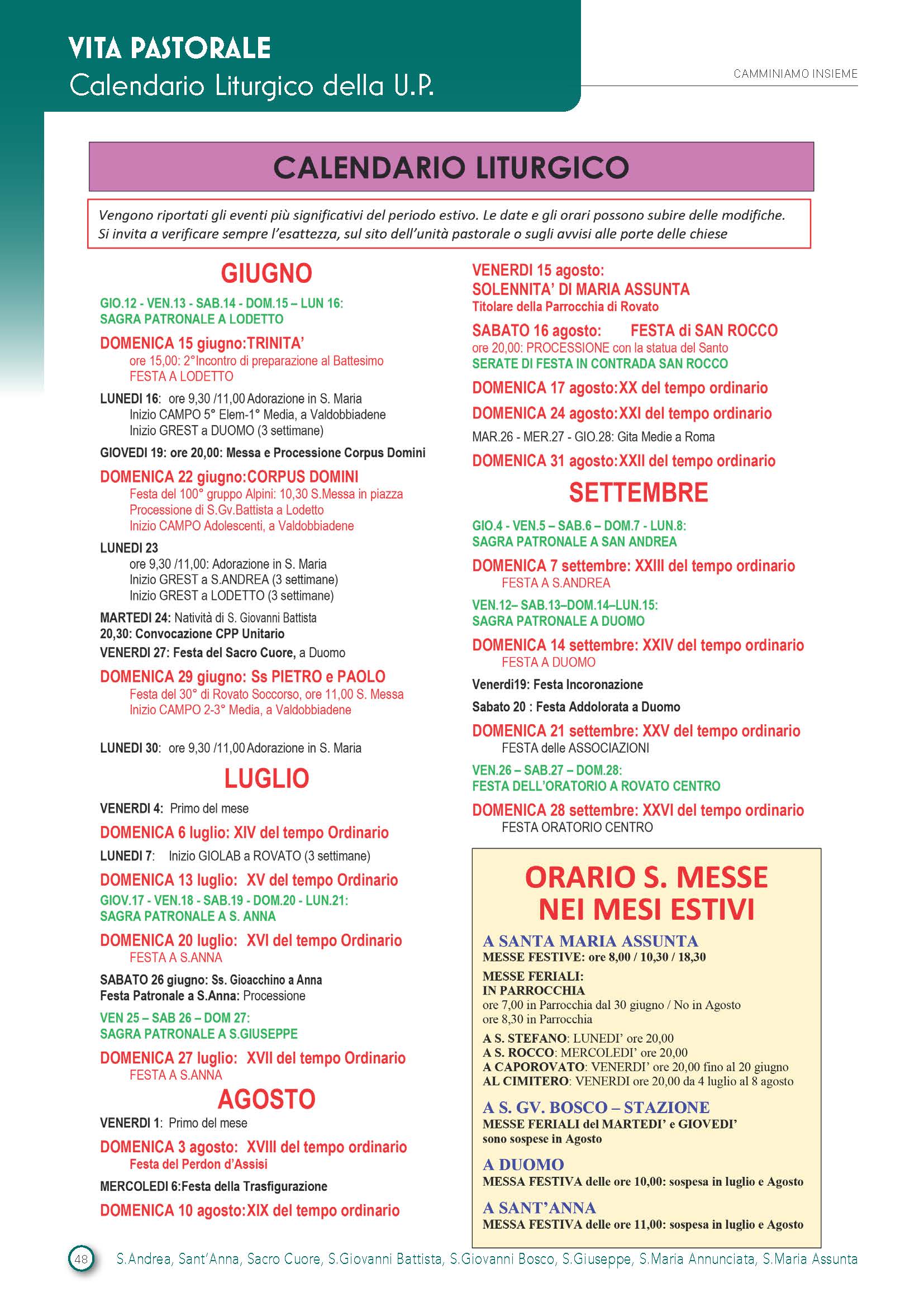 Calendari CALENDARIO UNITA’ PASTORALE CALENDARIO GRUPPO SCOUT ROVATO 1 SCHEMA ANNUALE ANIMAZIONI IN SANTA MARIA ASSUNTA