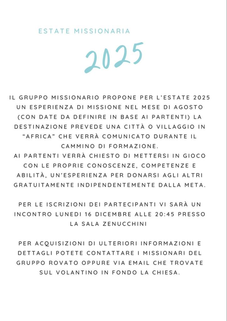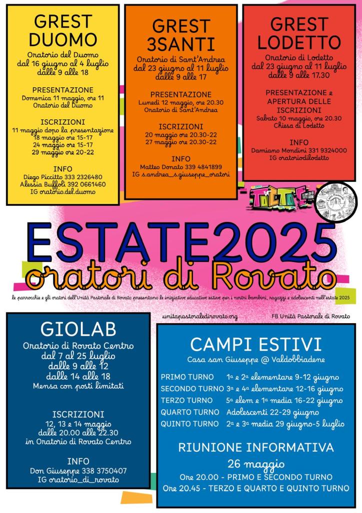 Per informazioni ed iscrizioni contattare l’ufficio parrocchiale di Rovato Centro, dal lunedì al venerdì dalle 9.30 alle 11.00 al numero 333 8177719 e-mail: ufficioparrocchialerovato@gmail.com