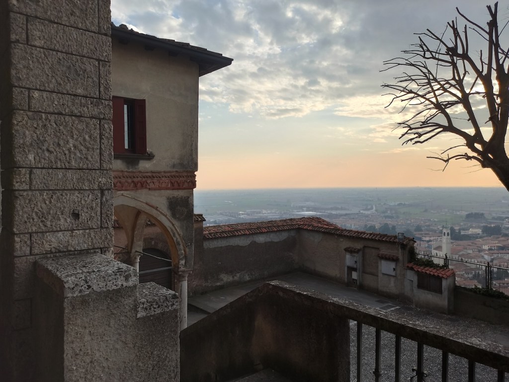Il convento della SS. Annunciata sorge nel 1449, alle pendici dl Monte Orfano, grazie ad una concessione del comune di Rovato ai frati Servi di Maria. Nel 1452 si insedia la prima comunità monastica che, tra il 1464 e il 1498, porta a compimento i lavori di costruzione del chiostro e della chiesa che viene consacrata nel 1507. Tra il 1535 e il 1540 Girolamo Romanino affresca le lunette absidali con la scena dell’Annunciazione, completando le decorazioni pittoriche già realizzate alla fine del Quattrocento. Nel 1630, anno della peste manzoniana, il monastero viene utilizzato come lazzaretto e per questo vengono in seguito imbiancate le pareti e coperti gli affreschi, ritrovati durante i restauri novecenteschi. La chiesa subisce, tra il 1635 e il 1640, una radicale trasformazione interna, soprattutto nella navata, con gli altari laterali incassati nelle murature e la grande volta a botte unghiata. Risalgono al 1642 gli ampi loggiati nel lato meridionale del complesso, che da allora costituiscono l’elemento architettonico di maggiore identificazione del sito. Dopo la soppressione del 1772, il convento viene acquistato da un privato e adibito a collegio. Il 31 marzo 1774 un terremoto colpisce il territorio bresciano e sono rilevati danni ingenti alla sacrestia, ma anche a buona parte del complesso monastico. Nel 1762 viene murata la parte superiore del chiostro e vengono aperte finestre al posto delle arcate, che vengono ripristinate durante i restauri novecenteschi solo nel lato meridionale. Nel 1870 il convento viene venduto ad una società per azioni e poi affittato a diverse famiglie che vi abitano fino al 1960, quando i frati lo acquistano e lo restaurano riportandolo all’originaria destinazione d’uso.