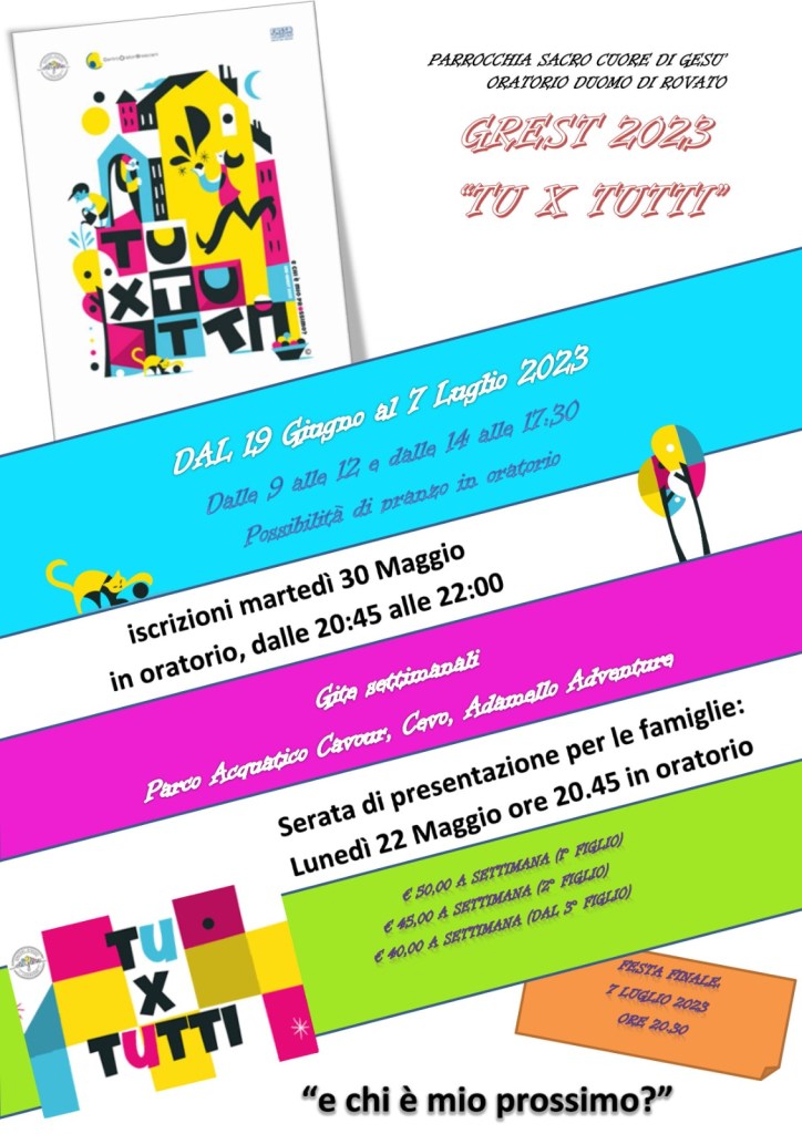 ISCRIZIONI GREST 2023 PRESSO ORATORIO DUOMO