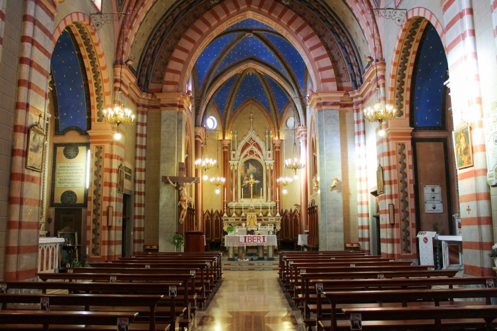 LA CHIESA PARROCCHIALE. Posta la prima pietra nel 1895 e costruita dall’impresa Bortolo Ziliani per iniziativa del curato don Luigi Pontoglio su progetto dell’arch. Carlo Melchiotti, venne benedetta nel novembre 1898. Di intonazione gotica, ad una navata a tre campate, con un arco trionfale che separa il presbiterio dalla navata, fu dipinta da Francesco Rubagotti sull’arco del presbiterio con dodici santi. Sull’altare maggiore vi è una tela di G.B. Guadagnini intitolata “L’educazione di Maria Vergine”. Venne di nuovo restaurata negli anni ’50.